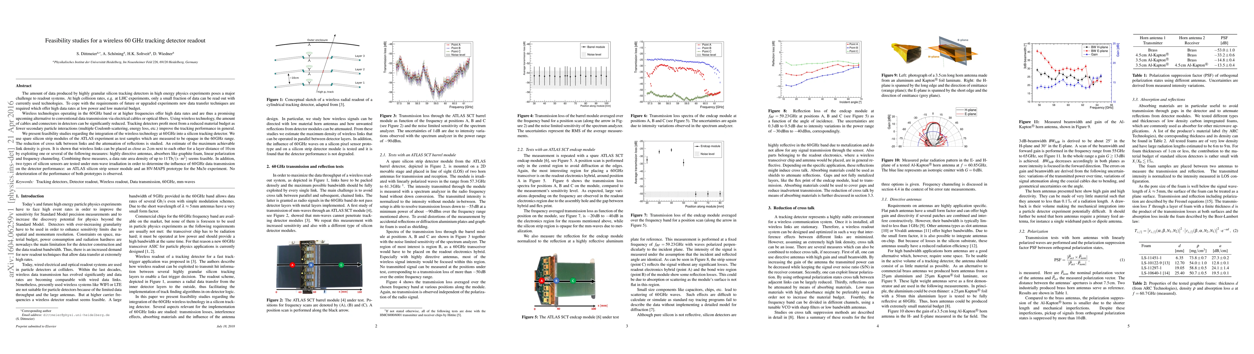 The amount of data produced by highly granular silicon tracking detectors in high energy physics experiments poses a major challenge to readout systems. At high collision rates, e.g. at LHC experiments, only a small fraction of data can be read out with currently used technologies. To cope with the requirements of future or upgraded experiments new data transfer techniques are required which offer high data rates at low power and low material budget. Wireless technologies operating in the 60 GHz band or at higher frequencies offer high data rates and are thus a promising upcoming alternative to conventional data transmission via electrical cables or optical fibers. Using wireless technology, the amount of cables and connectors in detectors can be significantly reduced. Tracking detectors profit most from a reduced material budget as fewer secondary particle interactions (multiple Coulomb scattering, energy loss, etc.) improve the tracking performance in general. We present feasibility studies regarding the integration of the wireless technology at 60 GHz into a silicon tracking detector. Spare silicon strip modules of the ATLAS experiment are measured to be opaque in the 60 GHz range. The reduction of cross talk between links is studied. An estimate of the maximum achievable link density is given. It is shown that wireless links can be placed as close as 2 cm next to each other for a layer distance of 10 cm by exploiting one or several of the following measures: highly directive antennas, absorbers, linear polarization and frequency channeling. Combining these measures, a data rate area density of up to 11 Tb/(s $\cdot$ m$^2$) seems feasible. In addition, two types of silicon sensors are tested under mm-wave irradiation . No deterioration of the performance of both prototypes is observed.