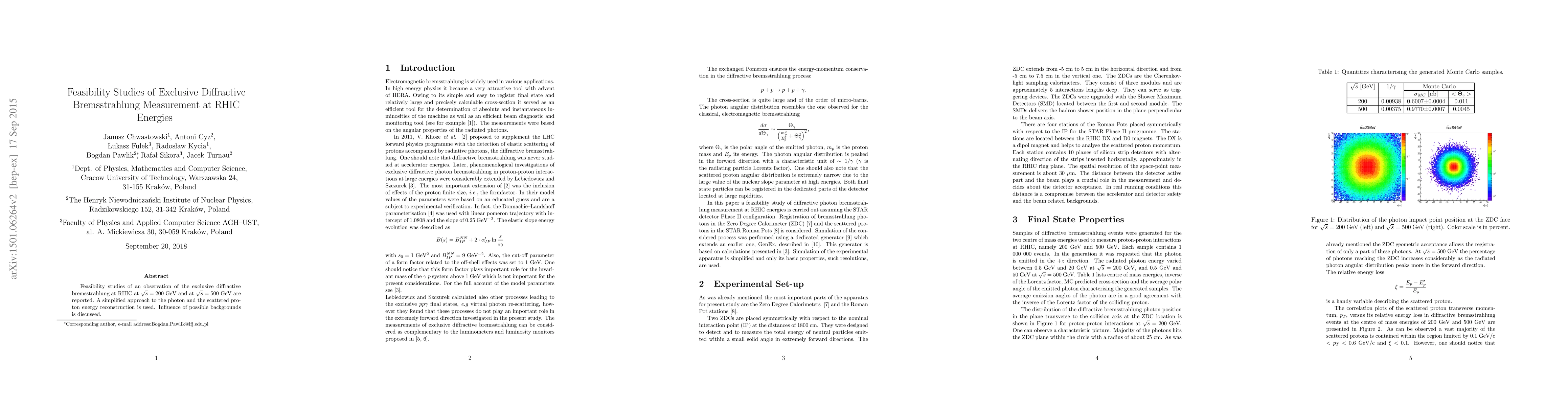 This paper investigates the feasibility of detecting exclusive diffractive bremsstrahlung at RHIC energies of $\sqrt{s} = 200$~GeV and $\sqrt{s} = 500$~GeV, employing a simplified method for photon and proton energy reconstruction, while considering potential background influences.
