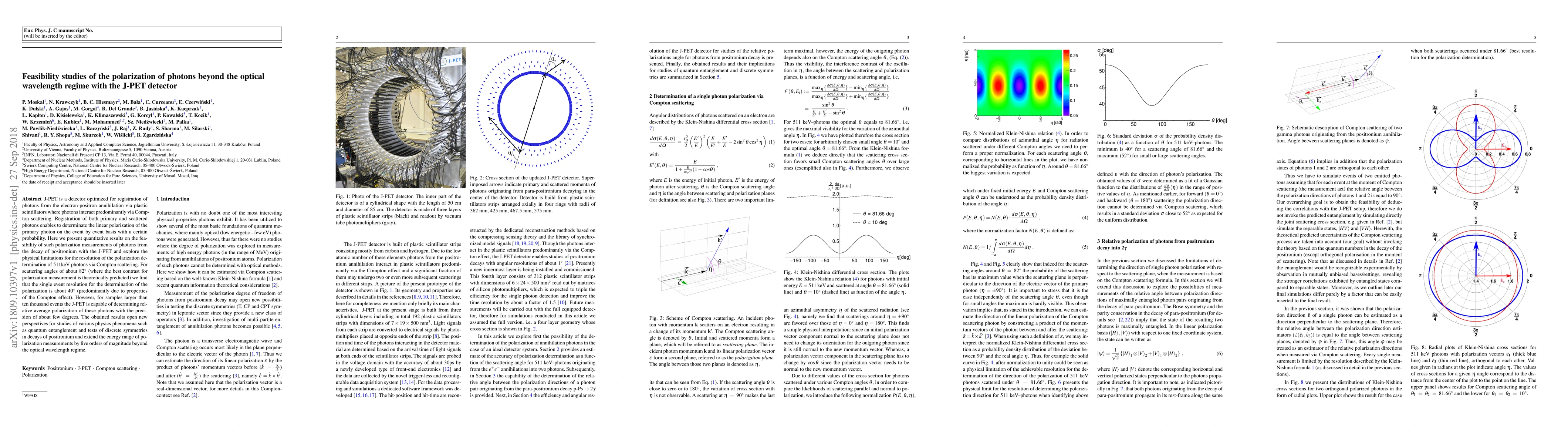 The J-PET detector demonstrates feasibility for measuring the polarization of 511 keV photons via Compton scattering, achieving a single event resolution of about 40 degrees. For larger sample sizes, it can determine relative average polarization with precision of a few degrees, extending polarization measurement capabilities beyond the optical wavelength regime.