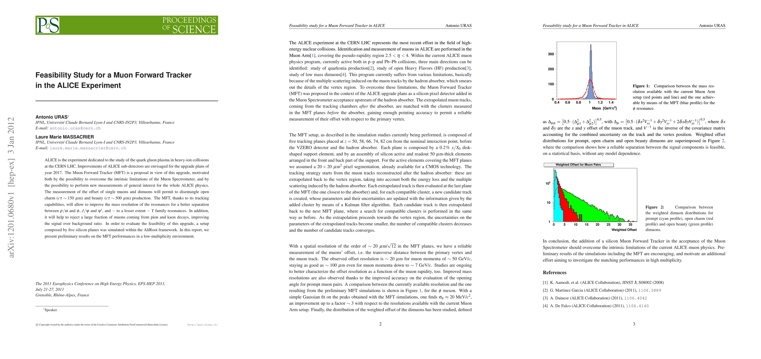 ALICE is the experiment dedicated to the study of the quark gluon plasma in heavy-ion collisions at the CERN LHC. Improvements of ALICE sub-detectors are envisaged for the upgrade plans of year 2017. The Muon Forward Tracker (MFT) is a proposal in view of this upgrade, motivated both by the possibility to overcome the intrinsic limitations of the Muon Spectrometer, and by the possibility to perform new measurements of general interest for the whole ALICE physics. The measurement of the offset of single muons and dimuons will permit to disentangle open charm ($c\tau \sim 150 \mu$m) and beauty ($c\tau \sim 500 \mu$m) production. The MFT, thanks to its tracking capabilities, will allow to improve the mass resolution of the resonances for a better separation between $\rho/\omega$ and $\phi$, $J/\psi$ and $\psi'$, and $-$ to a lesser extent $-$ $\Upsilon$ family resonances. In addition, it will help to reject a large fraction of muons coming from pion and kaon decays, improving the signal over background ratio. In order to evaluate the feasibility of this upgrade, a setup composed by five silicon planes was simulated within the AliRoot framework. In this report, we present preliminary results on the MFT performances in a low-multiplicity environment.
