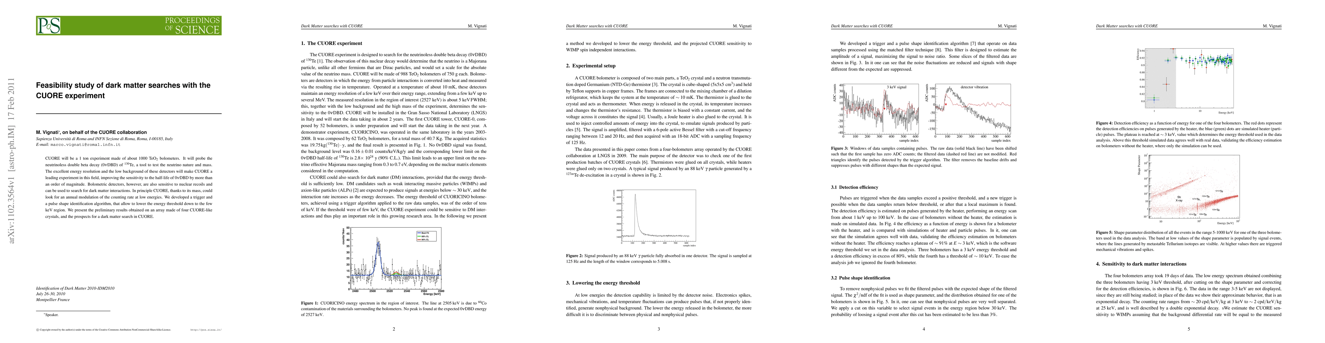 CUORE will be a 1 ton experiment made of about 1000 TeO$_2$ bolometers. It will probe the neutrinoless double beta decay (0$\nu$DBD) of $^{130}$Te, a tool to test the neutrino nature and mass. The excellent energy resolution and the low background of these detectors will make CUORE a leading experiment in this field, improving the sensitivity to the half-life of 0$\nu$DBD by more than an order of magnitude. Bolometric detectors, however, are also sensitive to nuclear recoils and can be used to search for dark matter interactions. In principle CUORE, thanks to its mass, could look for an annual modulation of the counting rate at low energies. We developed a trigger and a pulse shape identification algorithm, that allow to lower the energy threshold down to the few keV region. We present the preliminary results obtained on an array made of four CUORE-like crystals, and the prospects for a dark matter search in CUORE.