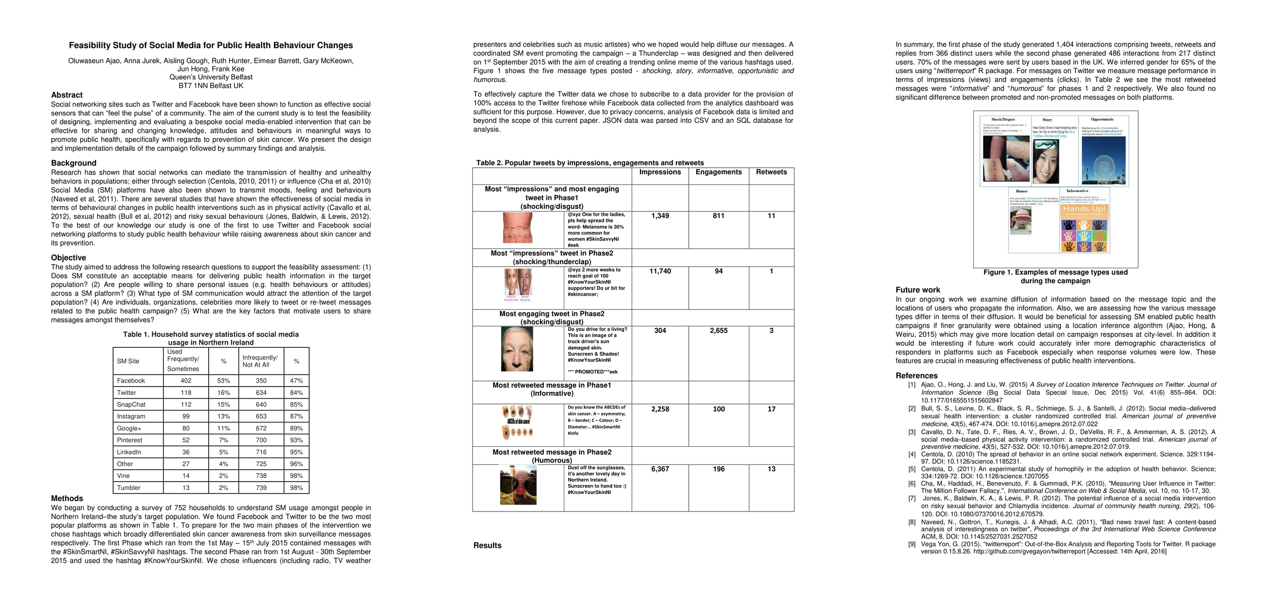 Social networking sites such as Twitter and Facebook have been shown to function as effective social sensors that can "feel the pulse" of a community. The aim of the current study is to test the feasibility of designing, implementing and evaluating a bespoke social media-enabled intervention that can be effective for sharing and changing knowledge, attitudes and behaviours in meaningful ways to promote public health, specifically with regards to prevention of skin cancer. We present the design and implementation details of the campaign followed by summary findings and analysis.