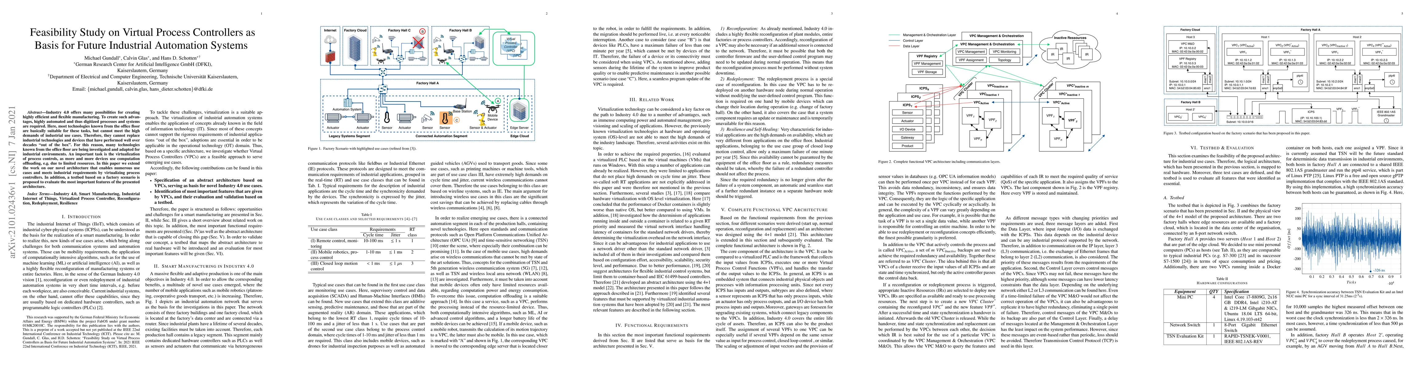 Industry 4.0 offers many possibilities for creating highly efficient and flexible manufacturing. To create such advantages, highly automated and thus digitized processes and systems are required. Here, most technologies known from the office floor are basically suitable for these tasks, but cannot meet the high demands of industrial use cases. Therefore, they cannot replace industrial technologies and devices that have performed well over decades "out of the box". For this reason, many technologies known from the office floor are being investigated and adapted for industrial environments. An important task is the virtualization of process controls, as more and more devices use computation offloading, e.g. due to limited resources. In this paper we extend the work on our novel architecture that enables numerous use cases and meets industrial requirements by virtualizing process controllers. In addition, a testbed based on a factory scenario is proposed to evaluate the most important features of the presented architecture.
