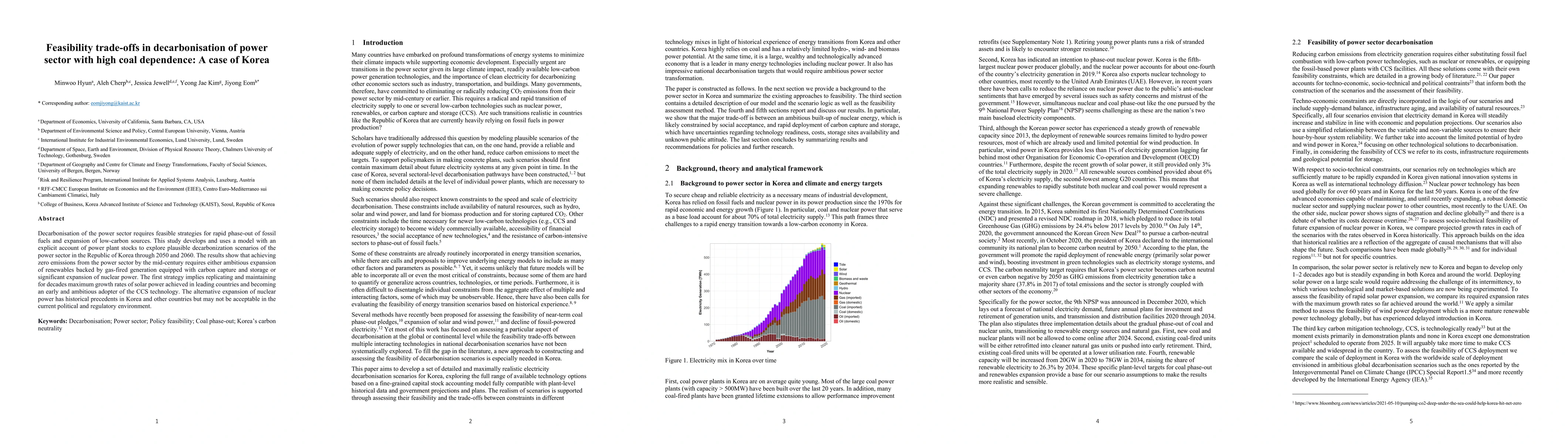 Achieving zero emissions in Korea's power sector by 2050-2060 requires either rapid expansion of renewables with carbon capture or significant nuclear growth. These strategies would necessitate decades-long growth rates for solar power and adoption of carbon capture technology.