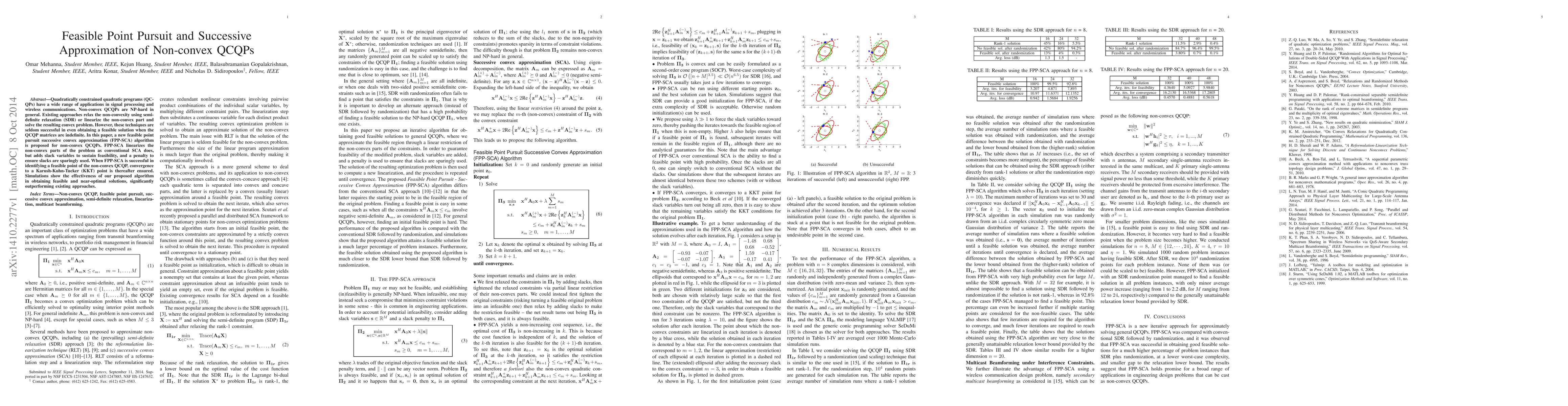 Quadratically constrained quadratic programs (QCQPs) have a wide range of applications in signal processing and wireless communications. Non-convex QCQPs are NP-hard in general. Existing approaches relax the non-convexity using semi-definite relaxation (SDR) or linearize the non-convex part and solve the resulting convex problem. However, these techniques are seldom successful in even obtaining a feasible solution when the QCQP matrices are indefinite. In this paper, a new feasible point pursuit successive convex approximation (FPP-SCA) algorithm is proposed for non-convex QCQPs. FPP-SCA linearizes the non-convex parts of the problem as conventional SCA does, but adds slack variables to sustain feasibility, and a penalty to ensure slacks are sparingly used. When FPP-SCA is successful in identifying a feasible point of the non-convex QCQP, convergence to a Karush-Kuhn-Tucker (KKT) point is thereafter ensured. Simulations show the effectiveness of our proposed algorithm in obtaining feasible and near-optimal solutions, significantly outperforming existing approaches.