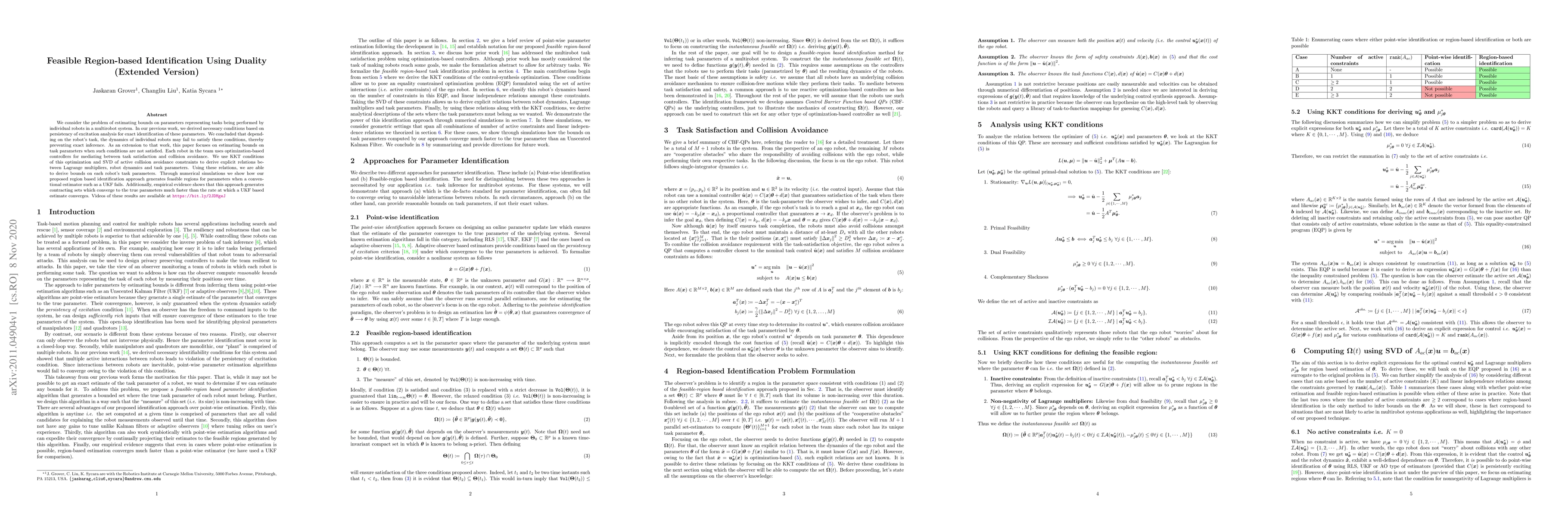 This paper extends previous work on identifying parameters in multirobot systems by estimating bounds when exact identification fails due to unsatisfied conditions. It proposes a region-based identification method using KKT conditions and SVD, generating feasible regions and faster convergence compared to UKF estimators.