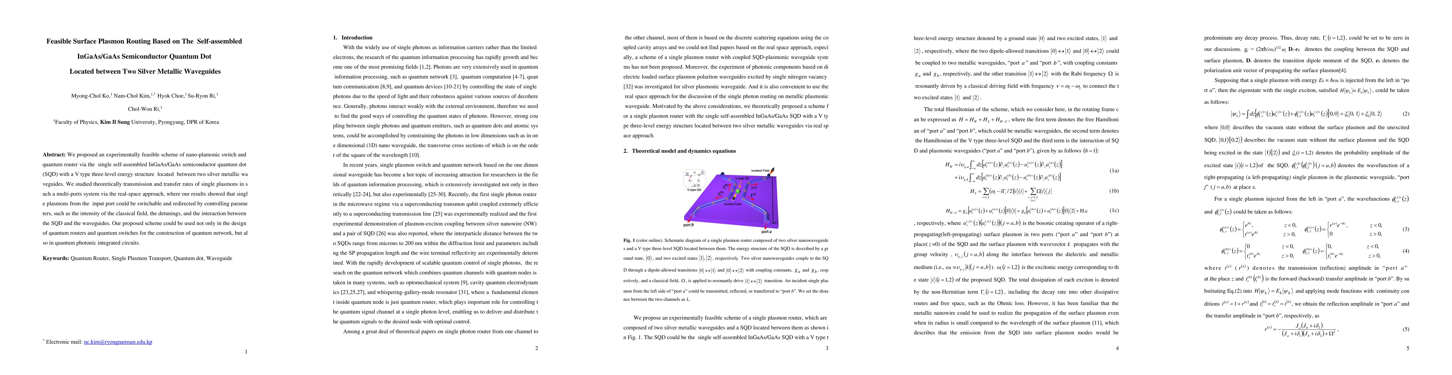 Researchers propose a method to control and route single plasmons using a self-assembled semiconductor quantum dot between two silver metallic waveguides, enabling the design of quantum routers and switches for quantum networks.