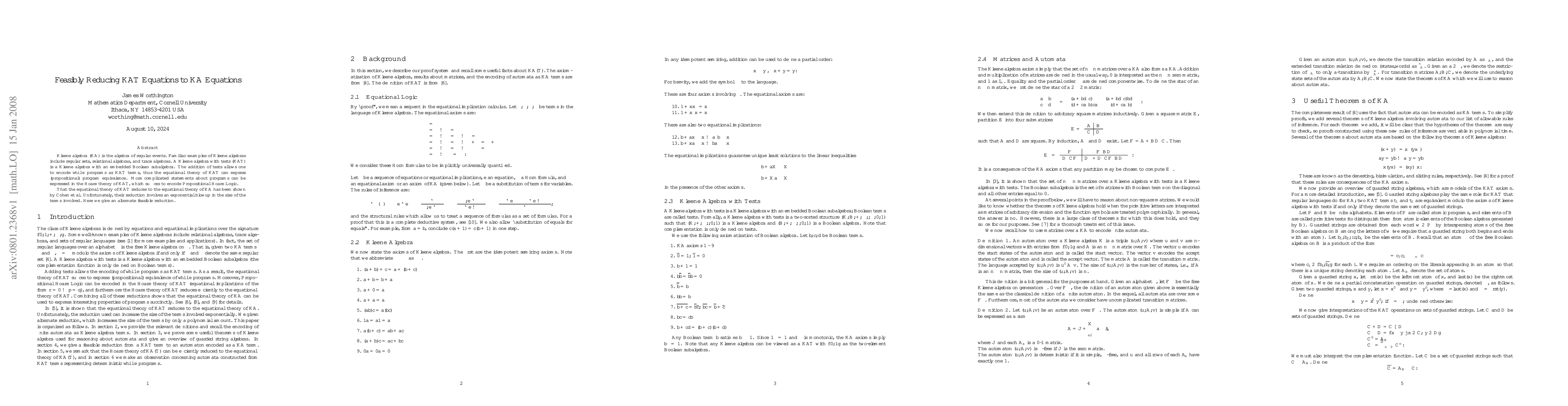 Researchers have developed a more efficient method to reduce Kleene algebra with tests (KAT) equations to Kleene algebra (KA) equations, improving the size of terms involved in the reduction.