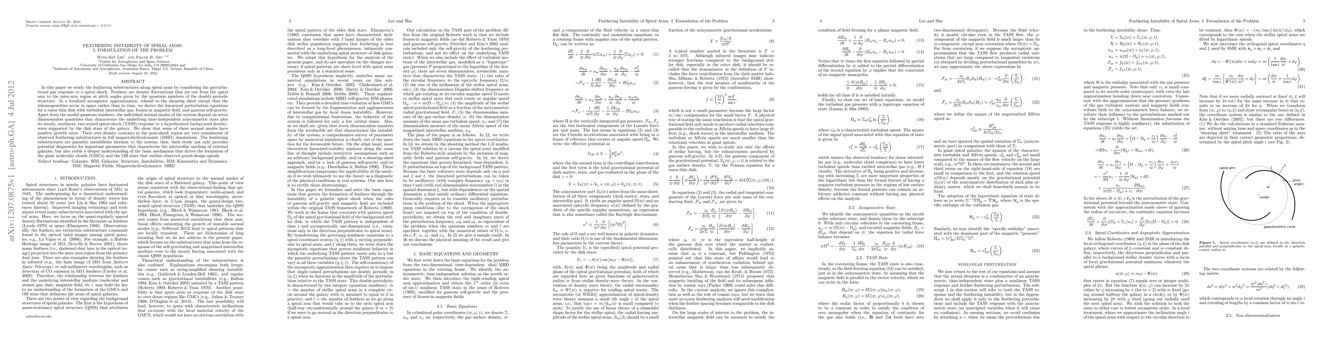 In this paper we study the feathering substructures along spiral arms by considering the perturbational gas response to a spiral shock. Feathers are density fluctuations that jut out from the spiral arm to the inter-arm region at pitch angles given by the quantum numbers of the doubly-periodic structure. In a localized asymptotic approximation, related to the shearing sheet except that the inhomogeneities occur in space rather than in time, we derive the linearized perturbation equations for a razor-thin disk with turbulent interstellar gas, frozen-in magnetic field, and gaseous self-gravity. Apart from the modal quantum numbers, the individual normal modes of the system depend on seven dimensionless quantities that characterize the underlying time-independent axisymmetric state plus its steady, nonlinear, two-armed spiral-shock (TASS) response to a hypothesized background density-wave supported by the disk stars of the galaxy. We show that some of these normal modes have positive growth rates. Their over-density contours in the post-shock region are very reminiscent of observed feathering substructures in full magnetohydrodynamic (MHD) simulations. The feathering substructures are parasitic instabilities intrinsic to the system; thus, their study not only provides potential diagnostics for important parameters that characterize the interstellar medium of external galaxies, but also yields a deeper understanding of the basic mechanism that drives the formation of the giant molecular clouds (GMCs) and the OB stars that outline observed grand-design spirals.