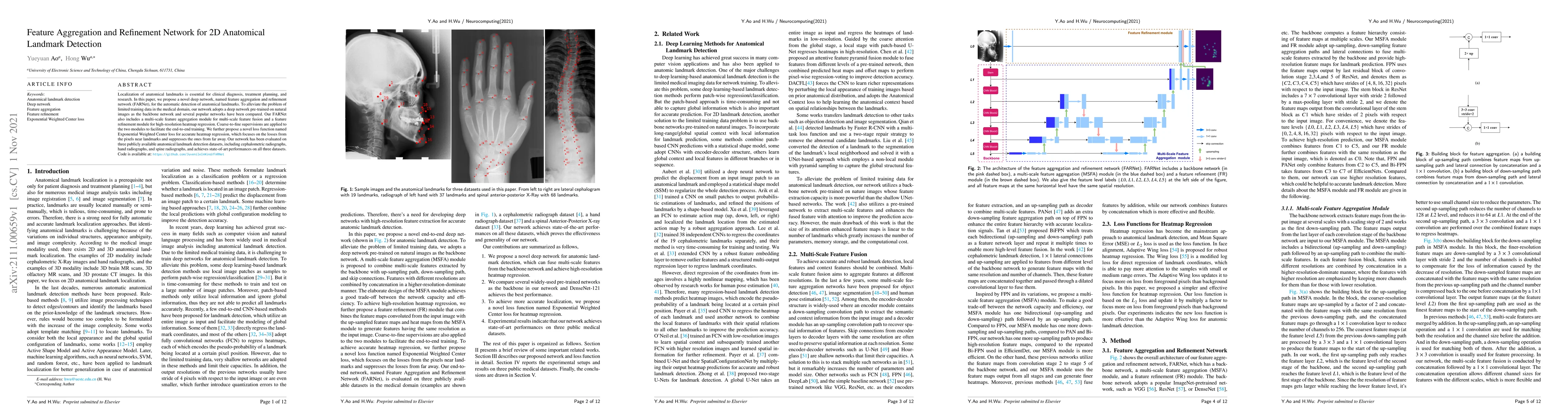 Localization of anatomical landmarks is essential for clinical diagnosis, treatment planning, and research. In this paper, we propose a novel deep network, named feature aggregation and refinement network (FARNet), for the automatic detection of anatomical landmarks. To alleviate the problem of limited training data in the medical domain, our network adopts a deep network pre-trained on natural images as the backbone network and several popular networks have been compared. Our FARNet also includes a multi-scale feature aggregation module for multi-scale feature fusion and a feature refinement module for high-resolution heatmap regression. Coarse-to-fine supervisions are applied to the two modules to facilitate the end-to-end training. We further propose a novel loss function named Exponential Weighted Center loss for accurate heatmap regression, which focuses on the losses from the pixels near landmarks and suppresses the ones from far away. Our network has been evaluated on three publicly available anatomical landmark detection datasets, including cephalometric radiographs, hand radiographs, and spine radiographs, and achieves state-of-art performances on all three datasets. Code is available at: \url{https://github.com/JuvenileInWind/FARNet}