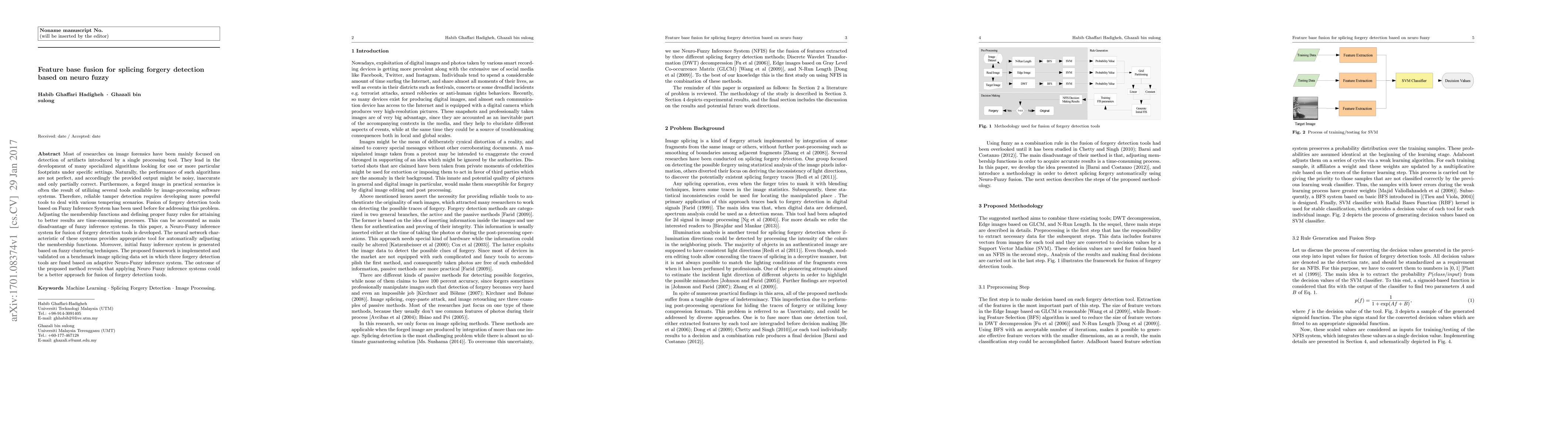 A methodology for fusion of features at the decision level was presented to automatically find possible forgery traces in grayscale images.