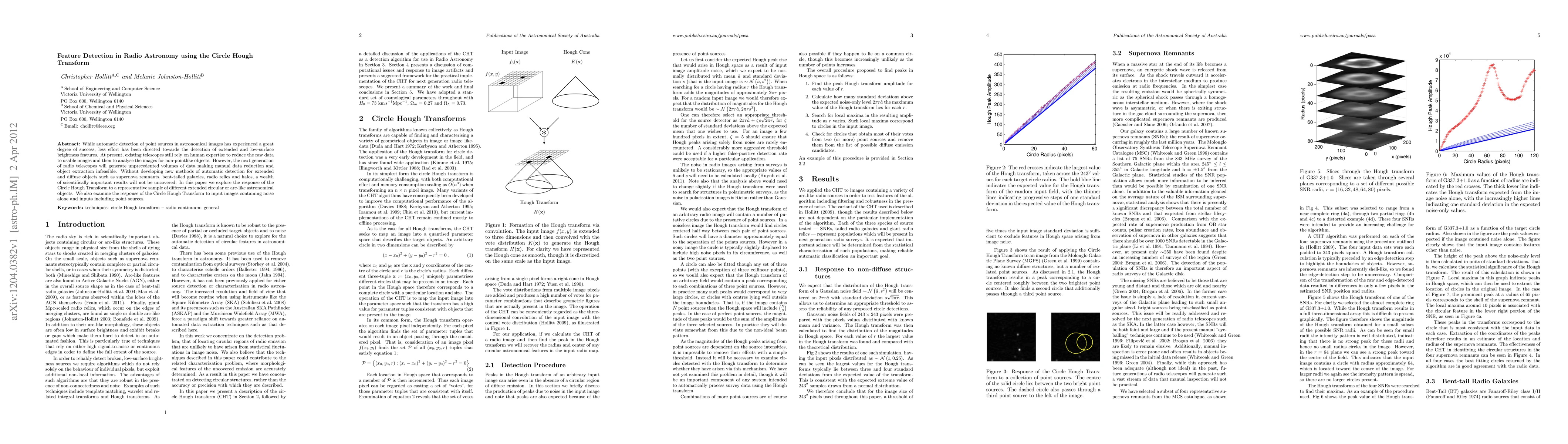 This paper investigates the Circle Hough Transform's effectiveness in detecting extended and low-surface brightness features in radio astronomy images, addressing the need for automated methods to handle the vast data from future telescopes. The study evaluates the transform's performance on various extended objects and its robustness against noise and point sources.