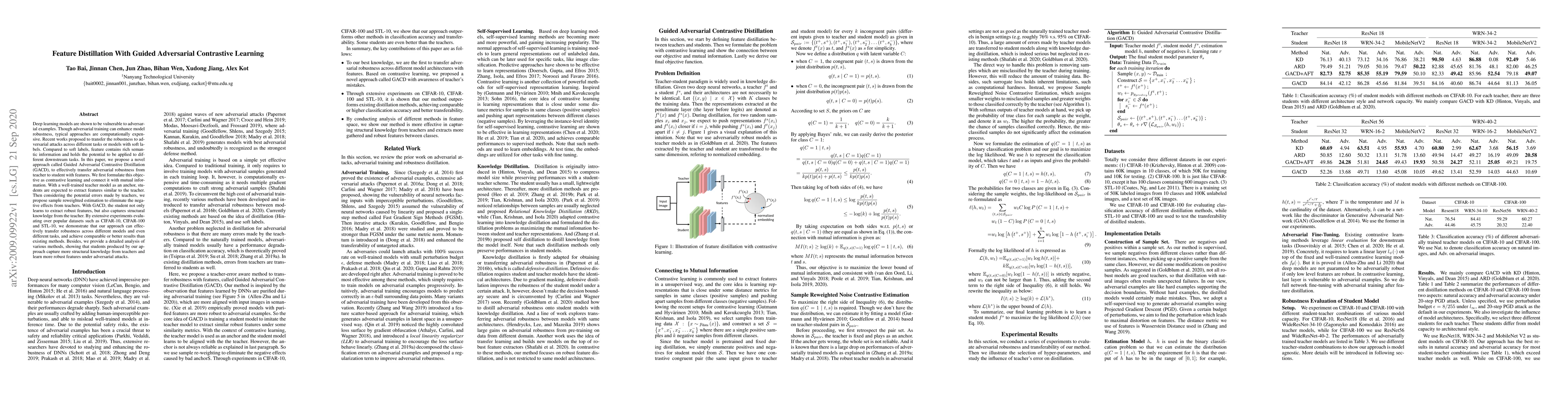 This paper proposes Guided Adversarial Contrastive Distillation (GACD) to transfer adversarial robustness from a teacher model to a student model using rich feature information instead of soft labels. GACD leverages contrastive learning and mutual information to ensure students extract robust and structurally knowledgeable features from the teacher, achieving better or comparable results on datasets like CIFAR-10 and STL-10.