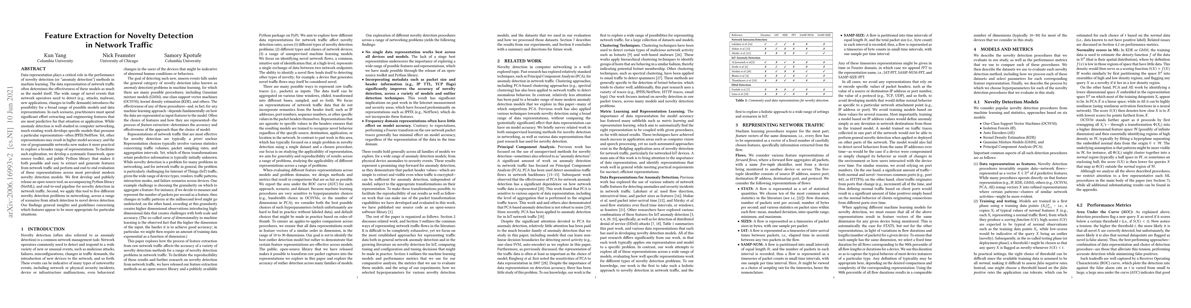 This paper presents a systematic framework and open-source toolkit for extracting and generating features from network traffic to enhance novelty detection models. The authors apply their tool to various anomaly detection scenarios, providing insights into which features are most effective for different network events.