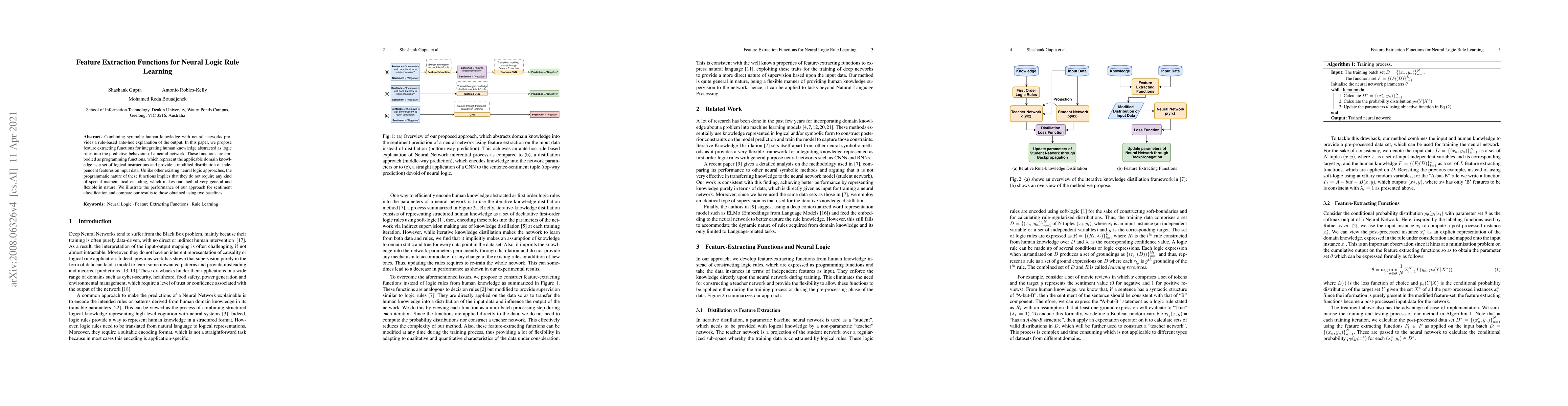 Combining symbolic human knowledge with neural networks provides a rule-based ante-hoc explanation of the output. In this paper, we propose feature extracting functions for integrating human knowledge abstracted as logic rules into the predictive behavior of a neural network. These functions are embodied as programming functions, which represent the applicable domain knowledge as a set of logical instructions and provide a modified distribution of independent features on input data. Unlike other existing neural logic approaches, the programmatic nature of these functions implies that they do not require any kind of special mathematical encoding, which makes our method very general and flexible in nature. We illustrate the performance of our approach for sentiment classification and compare our results to those obtained using two baselines.