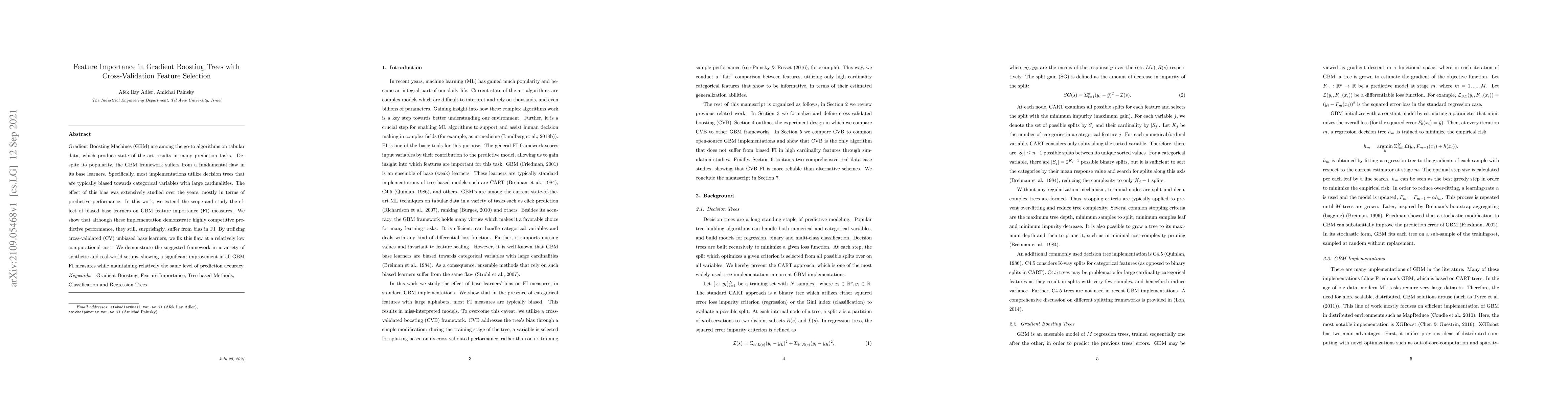 This paper investigates the bias in feature importance measures within Gradient Boosting Machines (GBM) due to their categorical variable bias. It proposes a cross-validated approach to mitigate this bias, demonstrating significant improvements in feature importance measures without compromising predictive accuracy.