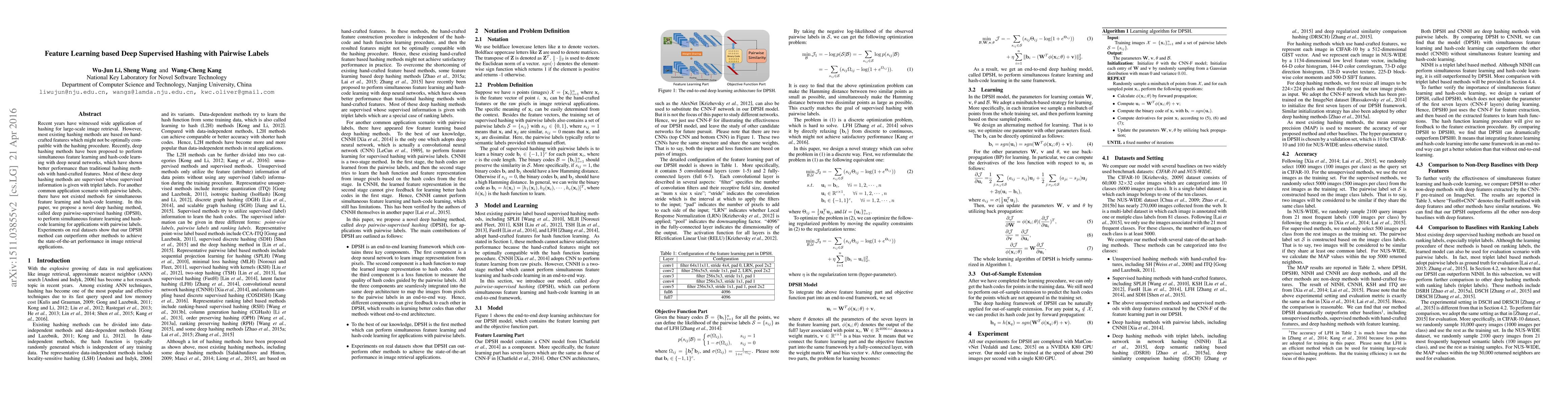 This paper introduces a novel deep hashing method called deep pairwise-supervised hashing (DPSH) to simultaneously learn features and hash codes using deep neural networks for scenarios with pairwise labels, outperforming other methods in image retrieval tasks.