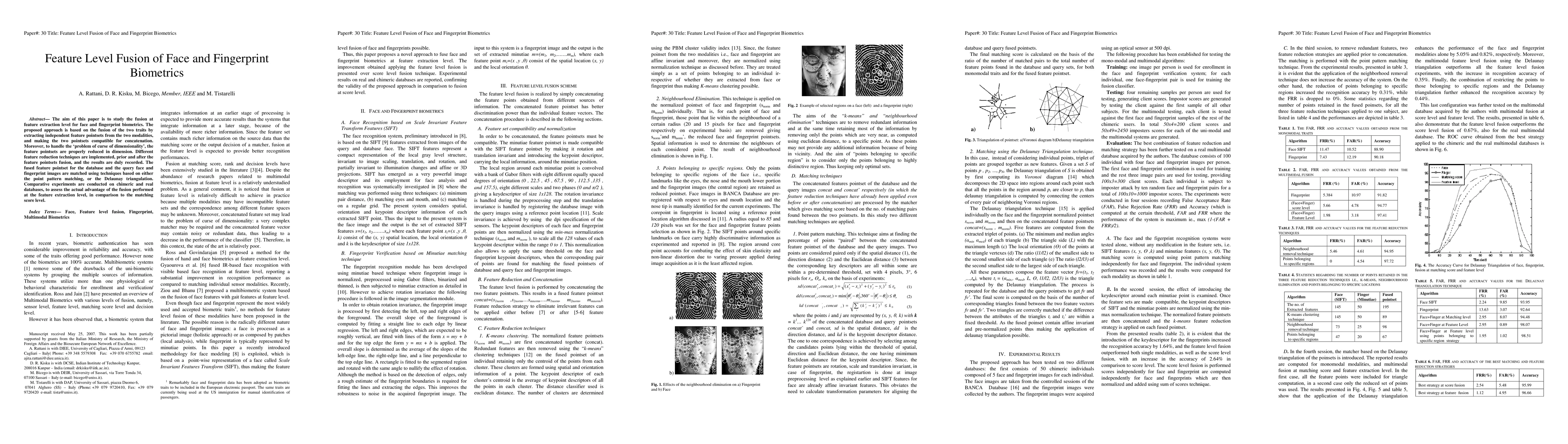 This paper proposes a method for feature level fusion of face and fingerprint biometrics by extracting and concatenating independent feature pointsets from both modalities, followed by dimensionality reduction. The fused feature pointset is matched using point pattern matching or Delaunay triangulation, and comparative experiments show the benefits of feature extraction level fusion over matching score level fusion.