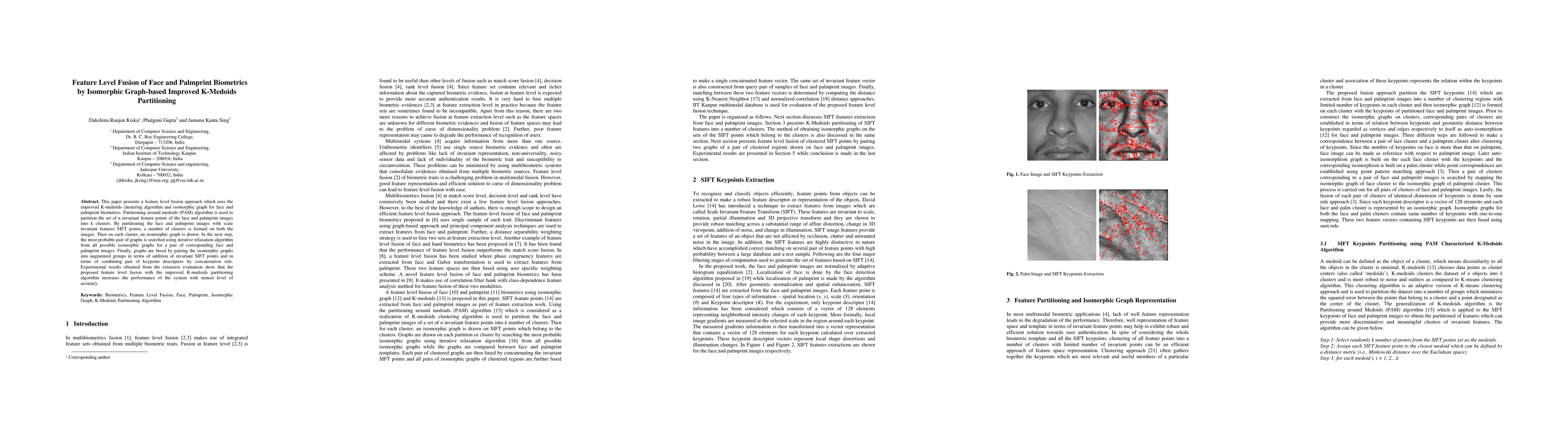 This paper proposes a feature level fusion method using an improved K-medoids algorithm and isomorphic graph for face and palmprint biometrics, achieving higher accuracy through partitioning and graph-based matching. Experimental results demonstrate enhanced system performance.