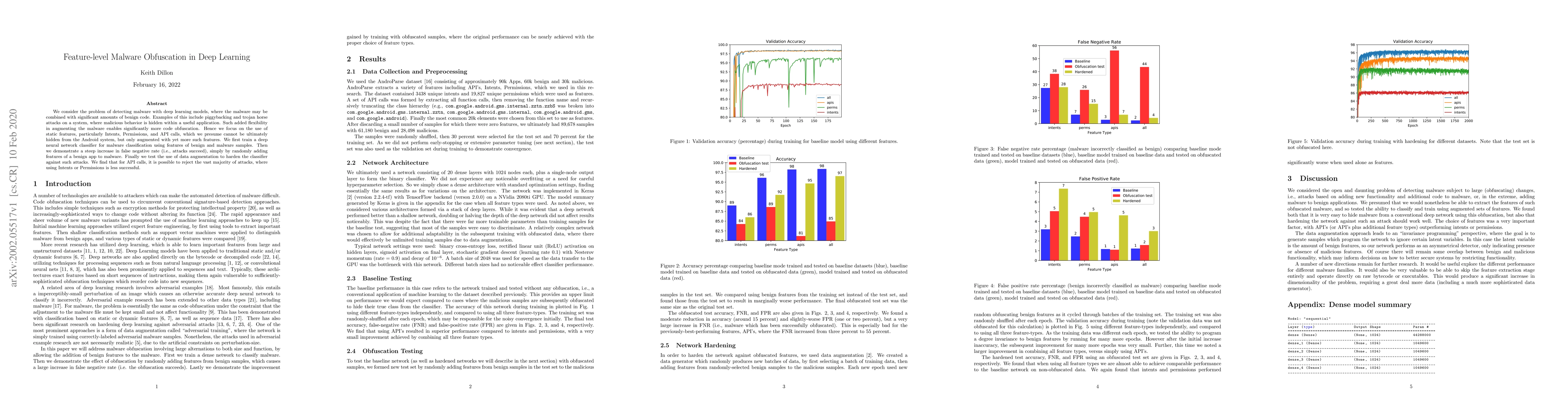 This paper explores deep learning-based malware detection in the presence of obfuscation through benign code augmentation, focusing on static features like Intents, Permissions, and API calls. It demonstrates that adding benign features can significantly increase false negatives, but data augmentation, especially with API calls, can effectively mitigate this issue.