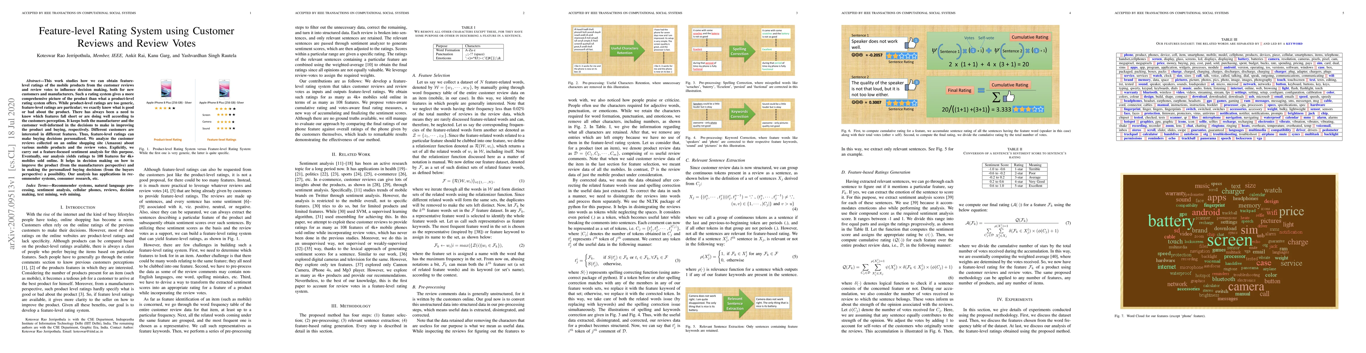 This research develops a feature-level rating system for mobile products using customer reviews and review votes, providing detailed insights into specific product features. The analysis offers personalized buying decisions for customers and actionable feedback for manufacturers to improve products.