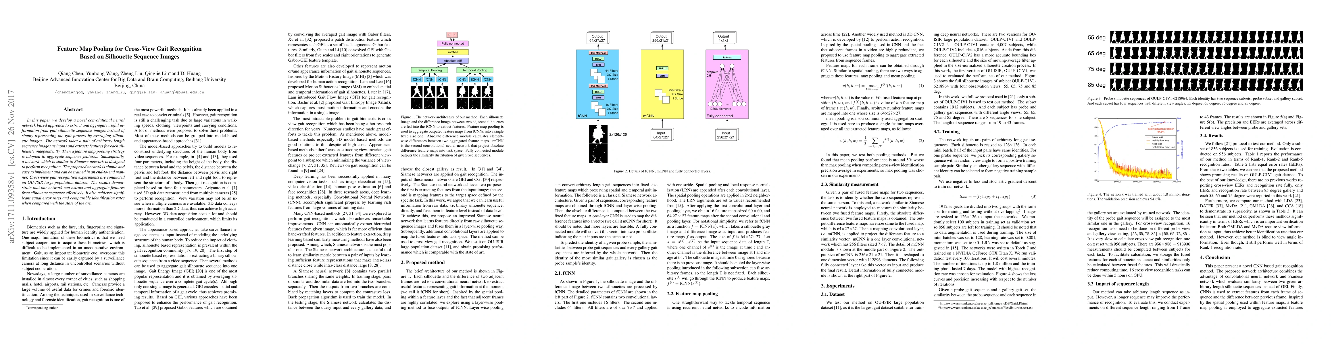 In this paper, we develop a novel convolutional neural network based approach to extract and aggregate useful information from gait silhouette sequence images instead of simply representing the gait process by averaging silhouette images. The network takes a pair of arbitrary length sequence images as inputs and extracts features for each silhouette independently. Then a feature map pooling strategy is adopted to aggregate sequence features. Subsequently, a network which is similar to Siamese network is designed to perform recognition. The proposed network is simple and easy to implement and can be trained in an end-to-end manner. Cross-view gait recognition experiments are conducted on OU-ISIR large population dataset. The results demonstrate that our network can extract and aggregate features from silhouette sequence effectively. It also achieves significant equal error rates and comparable identification rates when compared with the state of the art.