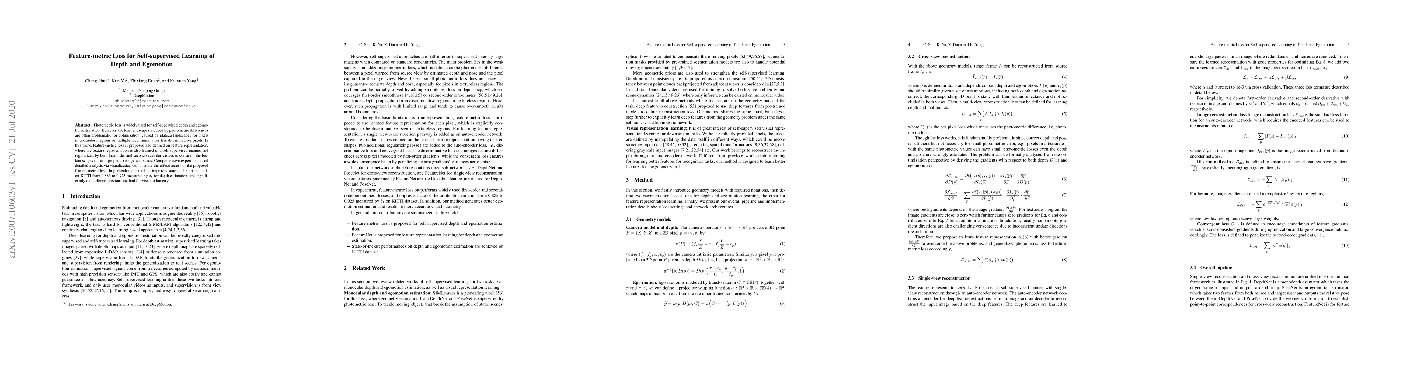 A new self-supervised learning method is proposed to improve depth and egomotion estimation accuracy, outperforming state-of-the-art methods on datasets like KITTI with significantly better results.