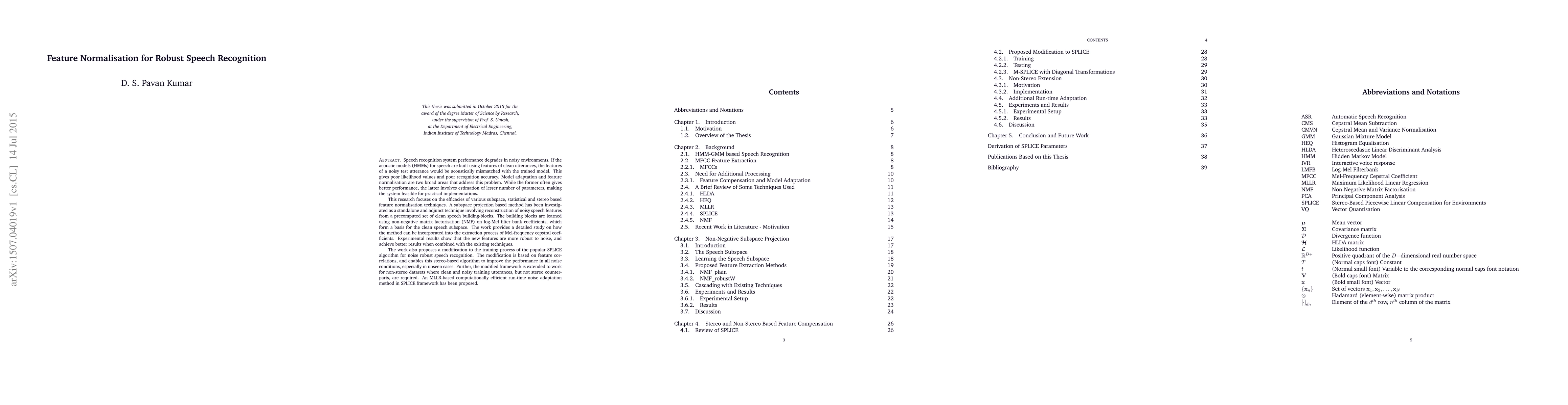 A modified version of the SPLICE algorithm was proposed for noise-robust ASR, incorporating feature normalisation.