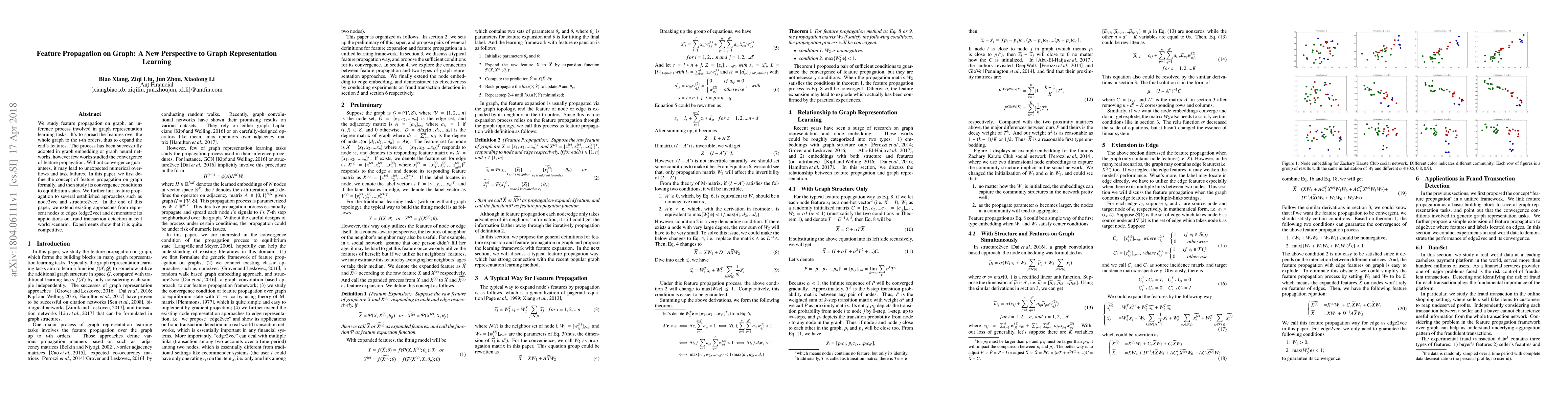 This paper formally defines feature propagation on graph and investigates its convergence conditions to equilibrium states, addressing potential numerical overflows. It links feature propagation to established methods like node2vec and extends it to edge representation (edge2vec), demonstrating its effectiveness in fraud transaction detection.