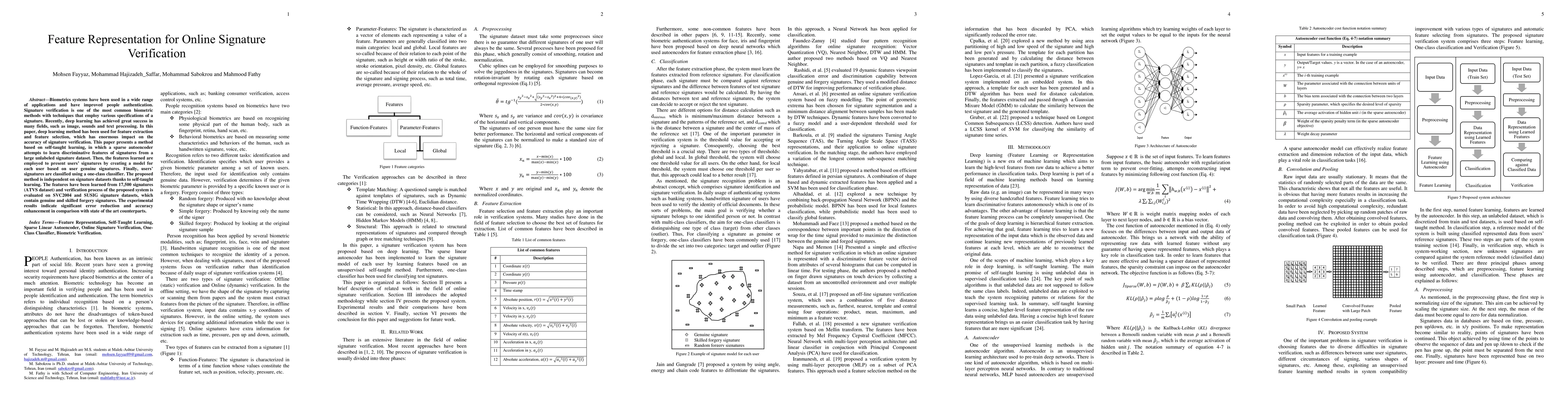 This paper explores the use of deep learning methods for feature extraction and selection in online signature verification, aiming to improve the accuracy of biometric authentication through advanced techniques. The study leverages deep learning's success in various fields to enhance signature verification processes.