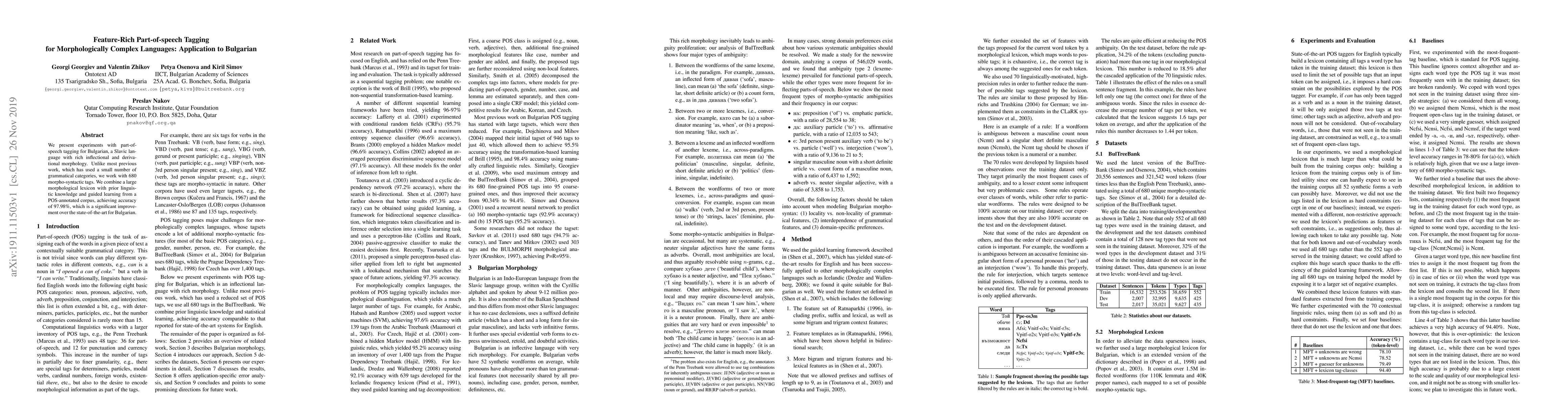 This study introduces an advanced part-of-speech tagging system for Bulgarian, a morphologically complex Slavic language, using 680 morpho-syntactic tags. The approach combines a comprehensive morphological lexicon, linguistic knowledge, and guided learning from a POS-annotated corpus, achieving an accuracy of 97.98%, surpassing previous state-of-the-art methods.