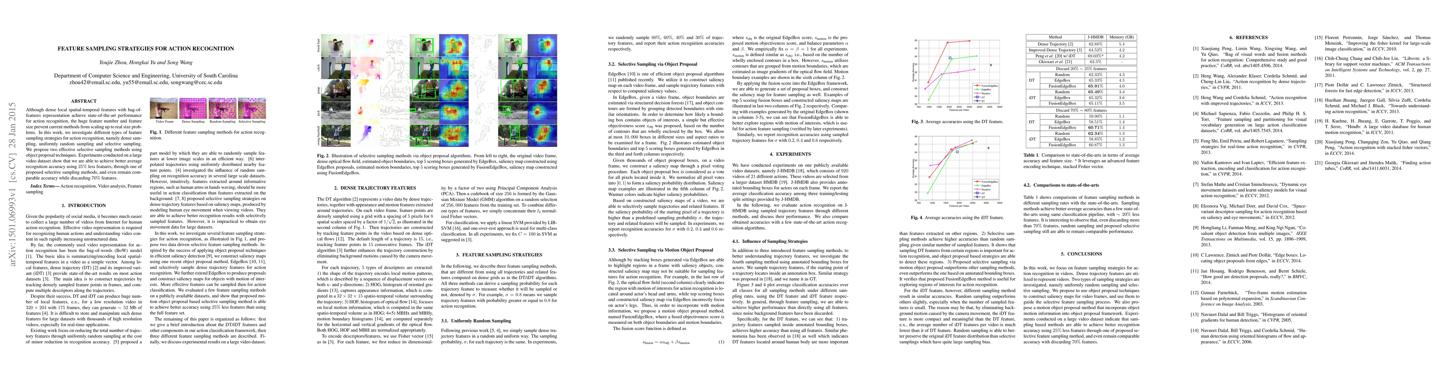 This paper explores various feature sampling strategies for action recognition, including dense, random, and selective sampling. It proposes two selective sampling methods leveraging object proposal techniques, achieving higher recognition accuracy with fewer features compared to traditional methods.