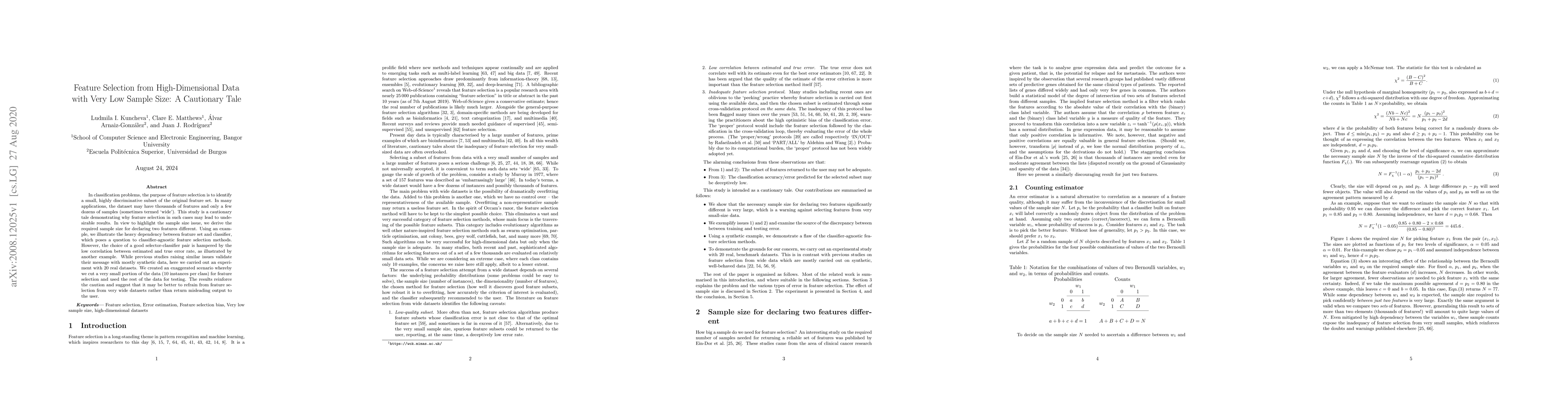 This study warns against feature selection in high-dimensional datasets with very low sample sizes, demonstrating through theoretical derivations and real-world experiments that such practices can lead to misleading results due to the heavy dependency on the chosen classifier. The findings suggest avoiding feature selection in these scenarios to prevent erroneous conclusions.