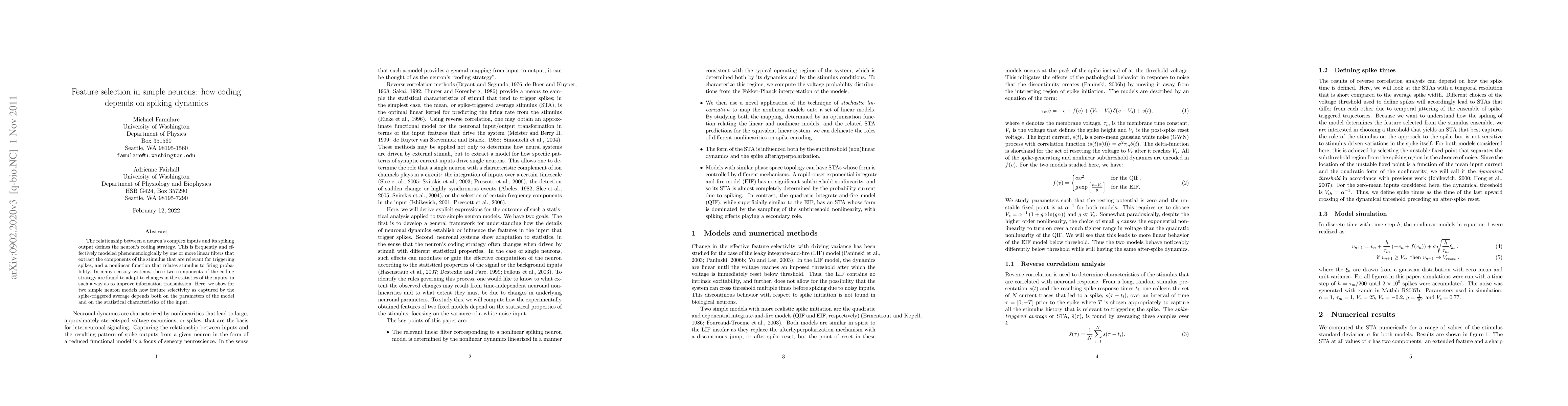 The relationship between a neuron's complex inputs and its spiking output defines the neuron's coding strategy. This is frequently and effectively modeled phenomenologically by one or more linear filters that extract the components of the stimulus that are relevant for triggering spikes, and a nonlinear function that relates stimulus to firing probability. In many sensory systems, these two components of the coding strategy are found to adapt to changes in the statistics of the inputs, in such a way as to improve information transmission. Here, we show for two simple neuron models how feature selectivity as captured by the spike-triggered average depends both on the parameters of the model and on the statistical characteristics of the input.