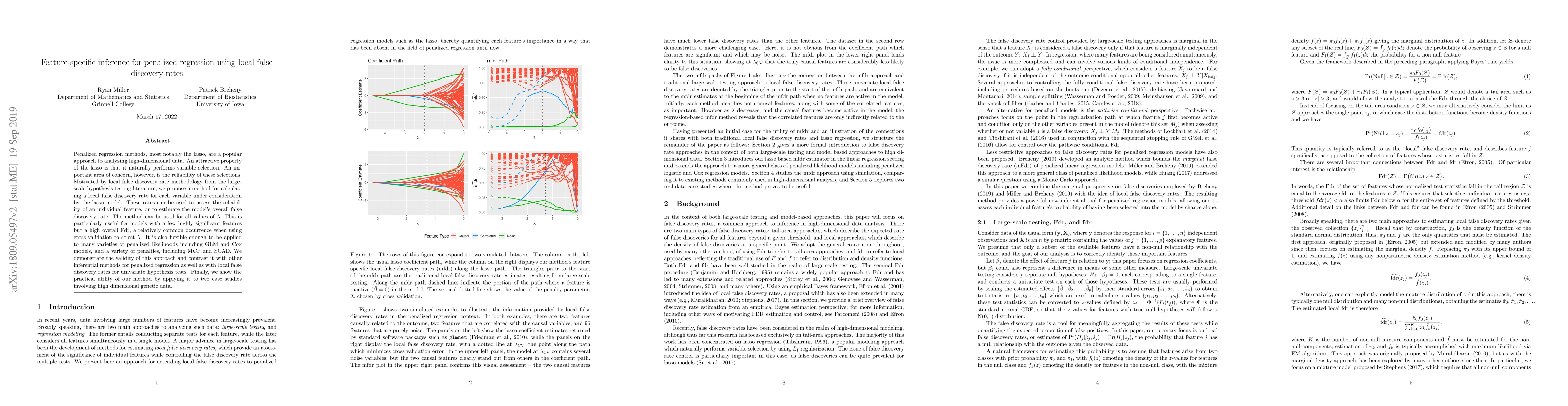 Penalized regression methods, most notably the lasso, are a popular approach to analyzing high-dimensional data. An attractive property of the lasso is that it naturally performs variable selection. An important area of concern, however, is the reliability of these variable selections. Motivated by local false discovery rate methodology from the large-scale hypothesis testing literature, we propose a method for calculating a local false discovery rate for each variable under consideration by the lasso model. These rates can be used to assess the reliability of an individual feature, or to estimate the model's overall false discovery rate. The method can be used for all values of $\lambda$. This is particularly useful for models with a few highly significant features but a high overall Fdr, which are a relatively common occurrence when using cross validation to select $\lambda$. It is also flexible enough to be applied to many varieties of penalized likelihoods including GLM and Cox models, and a variety of penalties, including MCP and SCAD. We demonstrate the validity of this approach and contrast it with other inferential methods for penalized regression as well as with local false discovery rates for univariate hypothesis tests. Finally, we show the practical utility of our method by applying it to two case studies involving high dimensional genetic data.