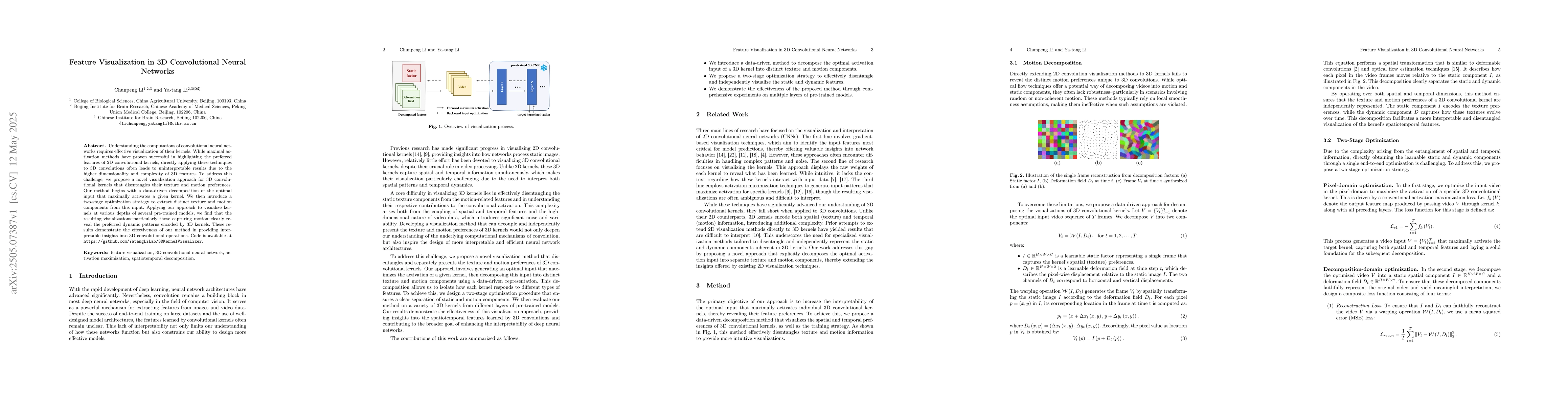 Researchers developed a novel method to visualize 3D convolutional neural network kernels, revealing their texture and motion preferences. The approach provides interpretable insights into 3D convolutions, helping to understand the computations of these complex neural networks.