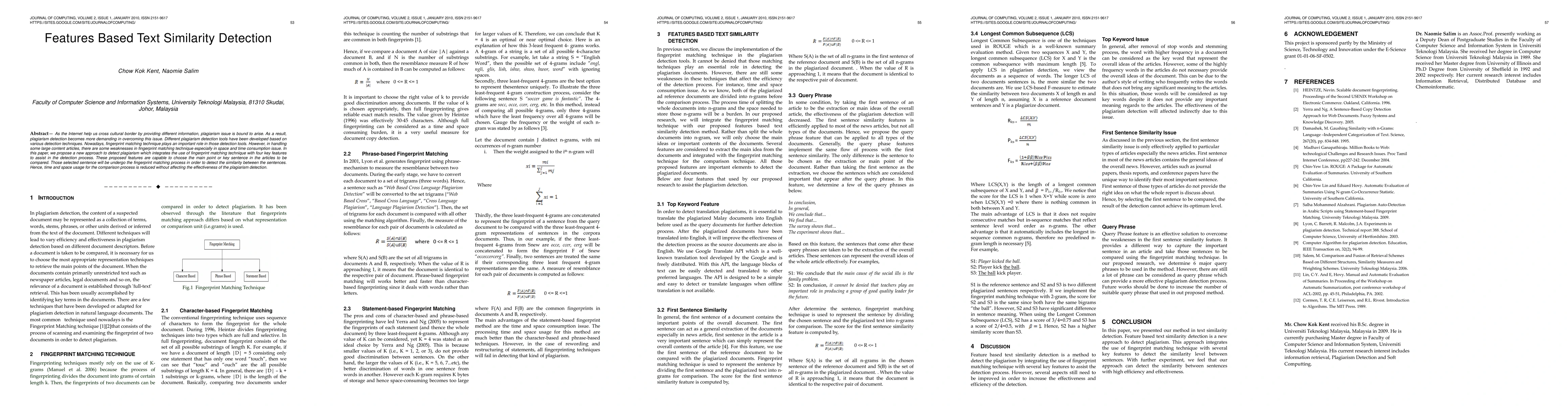 Researchers propose a new plagiarism detection approach that integrates fingerprint matching with four key features to reduce time and space consumption, improving effectiveness of similar sentence comparison.