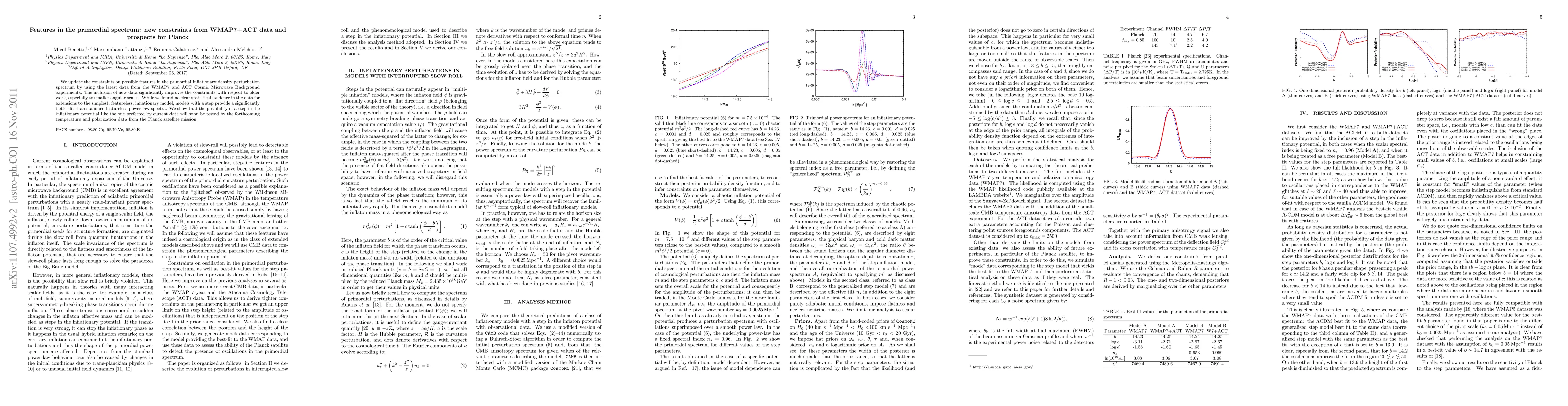 We update the constraints on possible features in the primordial inflationary density perturbation spectrum by using the latest data from the WMAP7 and ACT Cosmic Microwave Background experiments. The inclusion of new data significantly improves the constraints with respect to older work, especially to smaller angular scales. While we found no clear statistical evidence in the data for extensions to the simplest, featureless, inflationary model, models with a step provide a significantly better fit than standard featureless power-law spectra. We show that the possibility of a step in the inflationary potential like the one preferred by current data will soon be tested by the forthcoming temperature and polarization data from the Planck satellite mission.