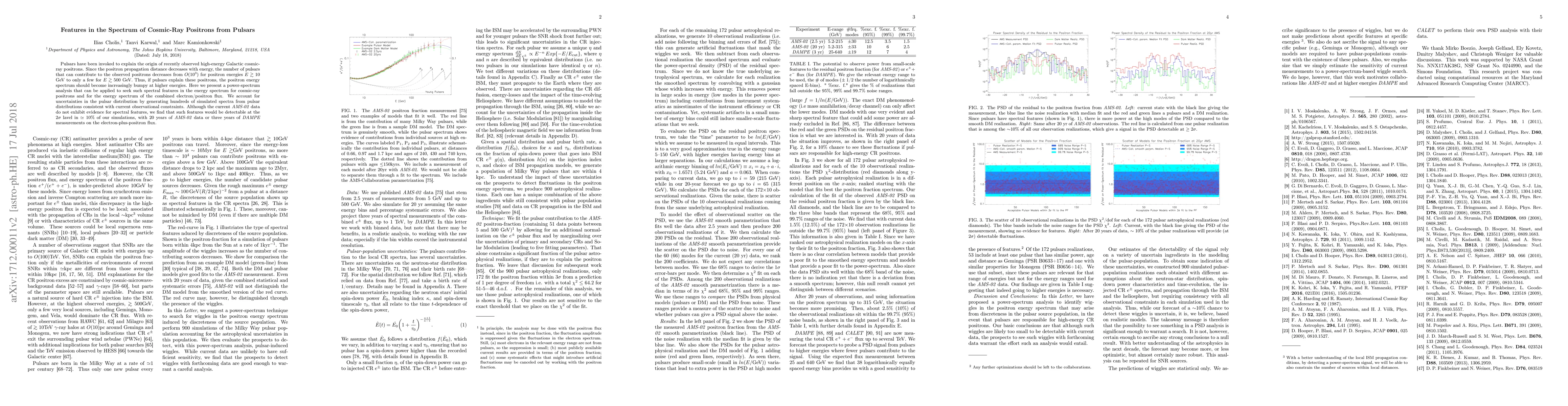 This work is novel in its application of power-spectrum analysis to cosmic-ray positron data, aiming to distinguish between pulsar and dark matter origins, and in forecasting the potential for detecting pulsar-related features with future data.