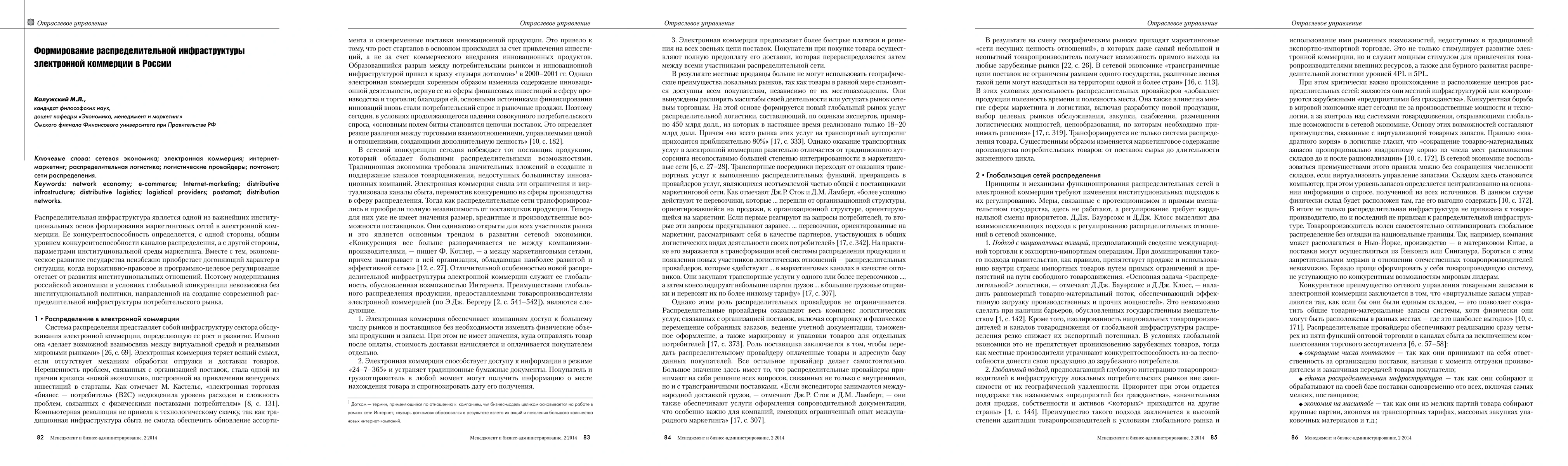 The paper discusses the objective laws governing the formation of e-commerce's distributive infrastructure in Russia, emphasizing its crucial role in shaping the network economy and highlighting the strategic importance of institutional regulation in modernizing logistics for the Russian economy.