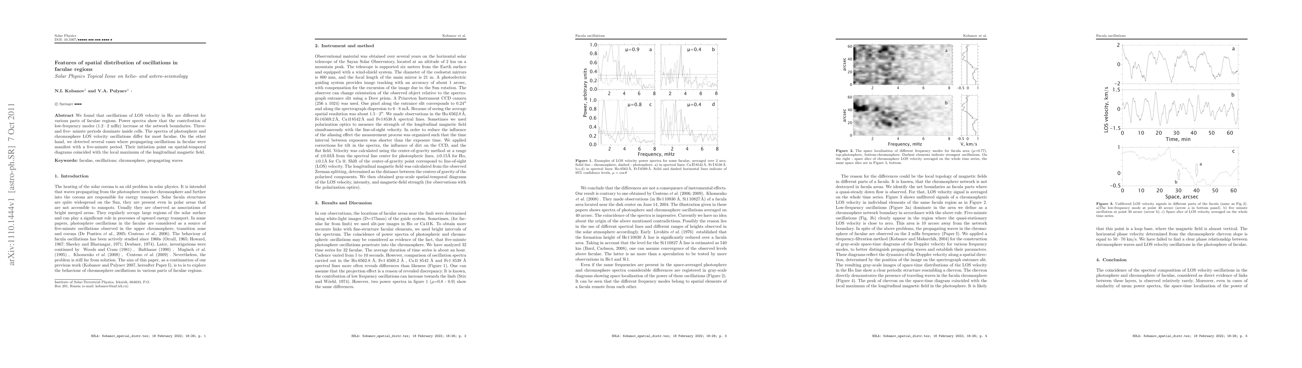 This paper investigates the spatial distribution of oscillations in faculae regions, revealing distinct low-frequency velocity oscillations at network boundaries and dominant three and five-minute periods within faculae cells. The study also notes differences in oscillation spectra between the photosphere and chromosphere, with some oscillations initiating near magnetic field maxima.