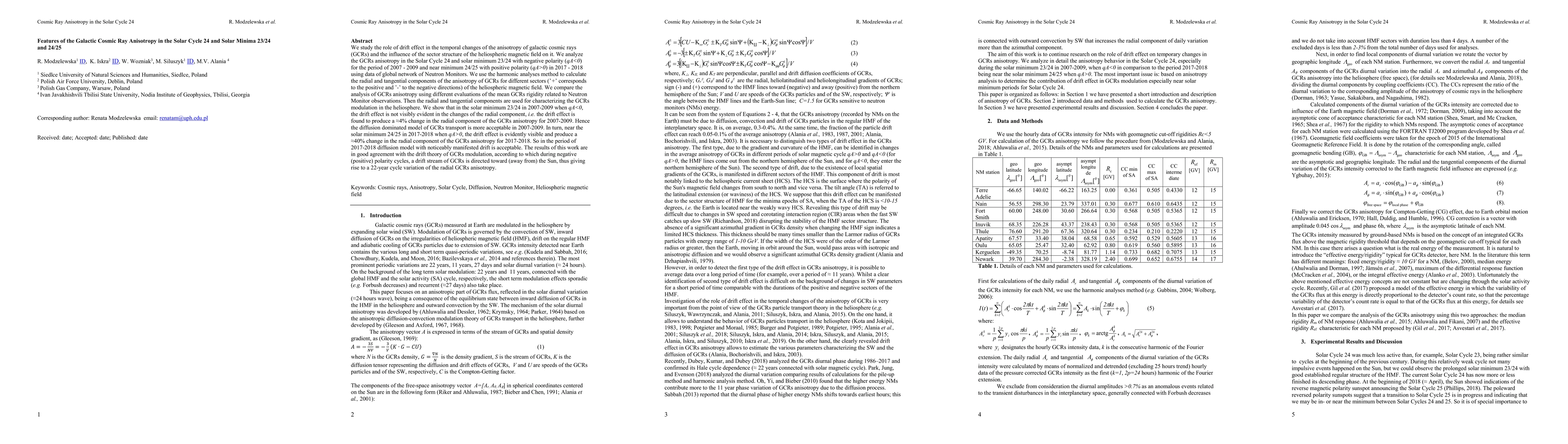 This study investigates the impact of solar cycles on galactic cosmic ray anisotropy, finding that a drift effect influences GCRs modulation in solar minima, supporting a diffusion model with drift.