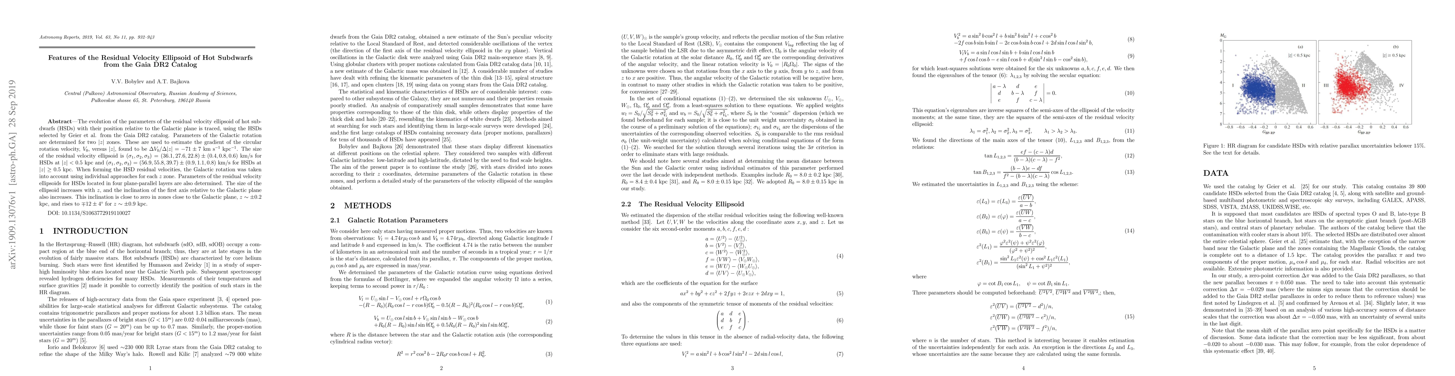 The evolution of the parameters of the residual velocity ellipsoid of hot subdwarfs (HSDs) with their position relative to the Galactic plane is traced, using the HSDs selected by Geier et al. from the Gaia DR2 catalog. Parameters of the Galactic rotation are determined for two $|z|$ zones. These are used to estimate the gradient of the circular rotation velocity, $V_0,$ versus $|z|,$ found to be $\Delta V_0/\Delta |z|=-71\pm7$ km s$^{-1}$ kpc$^{-1}$. The size of the residual velocity ellipsoid is $(\sigma_1,\sigma_2,\sigma_3)=(36.1,27.6,22.8)\pm(0.4,0.8,0.6)$ km/s for HSDs at $|z|<0.5$ kpc and $(\sigma_1,\sigma_2,\sigma_3)=(56.9,55.8,39.7)\pm(0.9,1.1,0.8)$ km/s for HSDs at $|z|\geq0.5$ kpc. When forming the HSD residual velocities, the Galactic rotation was taken into account using individual approaches for each $z$ zone. Parameters of the residual velocity ellipsoids for HSDs located in four plane-parallel layers are also determined. The size of the ellipsoid increases with $z,$ and the inclination of the first axis relative to the Galactic plane also increases. This inclination is close to zero in zones close to the Galactic plane, $z\sim\pm0.2$ kpc, and rises to $\mp12\pm4^\circ$ for $z\sim\pm0.9$ kpc.