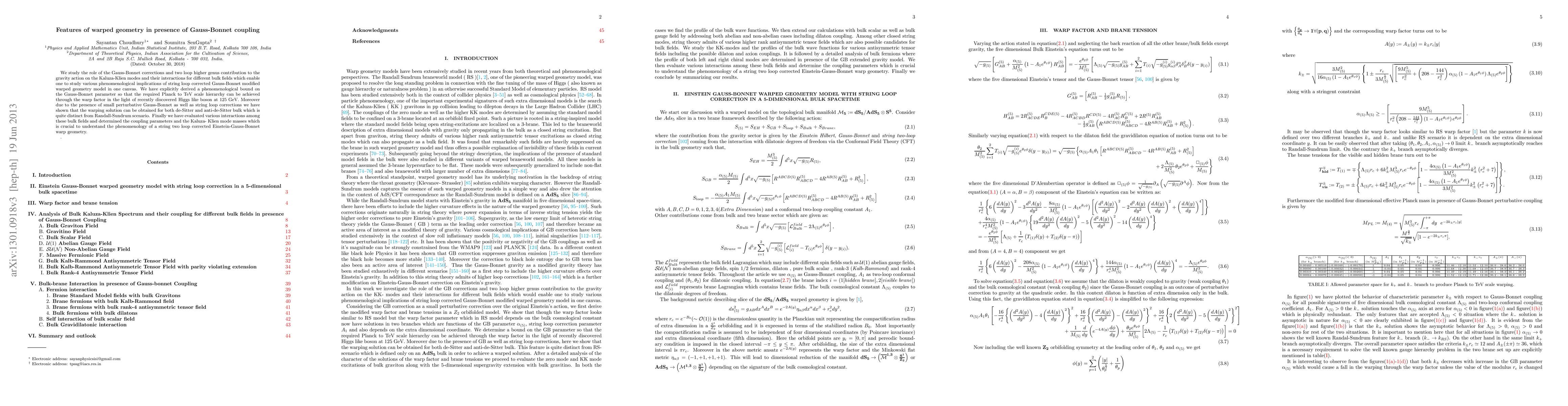 We study the role of the Gauss-Bonnet corrections and two loop higher genus contribution to the gravity action on the Kaluza-Klien modes and their interactions for different bulk fields which enable one to study various phenomenological implications of string loop corrected Gauss-Bonnet modified warped geometry model in one canvas. We have explicitly derived a phenomenological bound on the Gauss-Bonnet parameter so that the required Planck to TeV scale hierarchy can be achieved through the warp factor in the light of recently discovered Higgs like boson at 125 GeV. Moreover due to the presence of small perturbative Gauss-Bonnet as well as string loop corrections we have shown that the warping solution can be obtained for both de-Sitter and anti-de-Sitter bulk which is quite distinct from Randall-Sundrum scenario. Finally we have evaluated various interactions among these bulk fields and determined the coupling parameters and the Kaluza- Klien mode masses which is crucial to understand the phenomenology of a string two loop corrected Einstein-Gauss-Bonnet warp geometry.