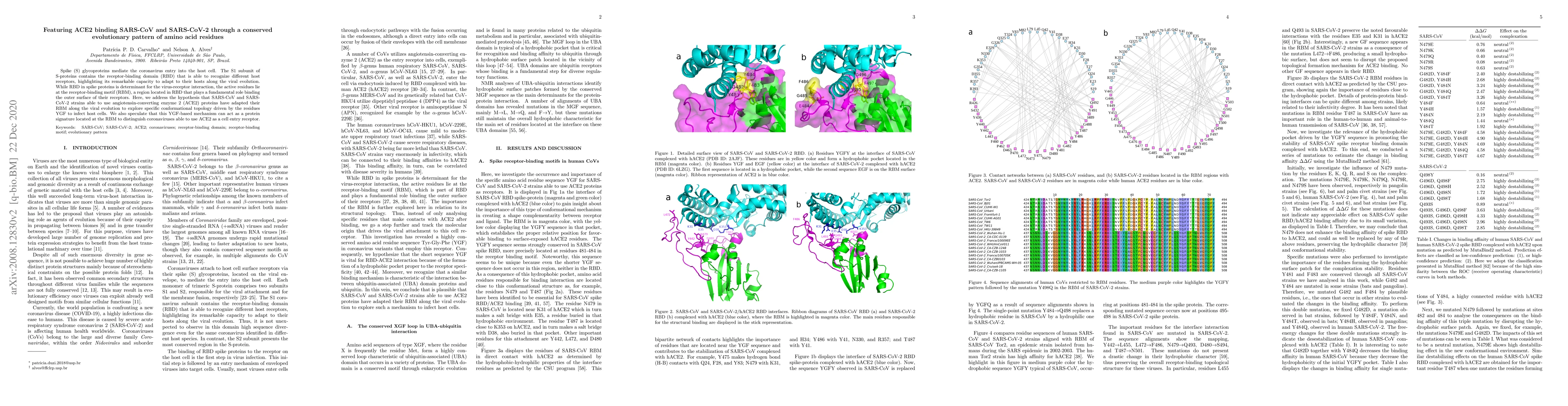 Spike (S) glycoproteins mediate the coronavirus entry into the host cell. The S1 subunit of S-proteins contains the receptor-binding domain (RBD) that is able to recognize different host receptors, highlighting its remarkable capacity to adapt to their hosts along the viral evolution. While RBD in spike proteins is determinant for the virus-receptor interaction, the active residues lie at the receptor-binding motif (RBM), a region located in RBD that plays a fundamental role binding the outer surface of their receptors. Here, we address the hypothesis that SARS-CoV and SARS-CoV-2 strains able to use angiotensin-converting enzyme 2 (ACE2) proteins have adapted their RBM along the viral evolution to explore specific conformational topology driven by the residues YGF to infect host cells. We also speculate that this YGF-based mechanism can act as a protein signature located at the RBM to distinguish coronaviruses able to use ACE2 as a cell entry receptor.