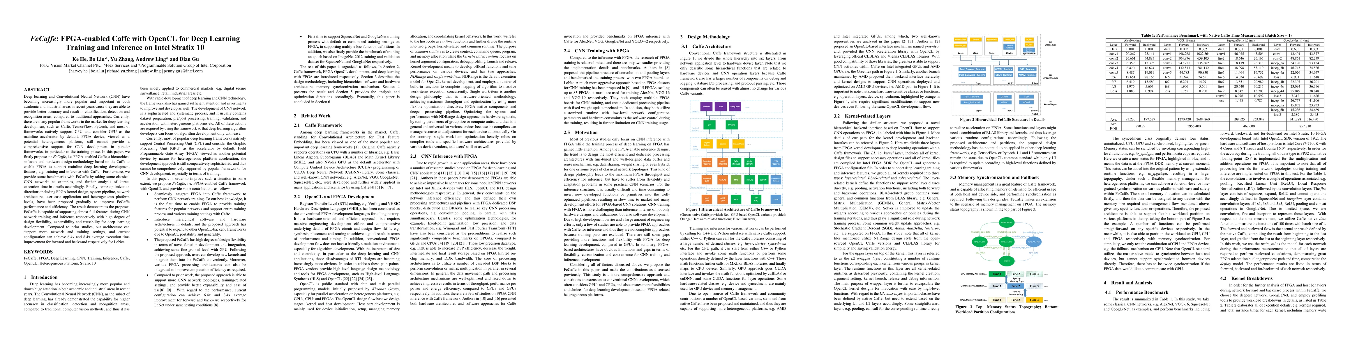 This paper introduces FeCaffe, an FPGA-enabled Caffe framework utilizing OpenCL for enhanced deep learning training and inference on Intel Stratix 10 devices. The proposed methodology aims to extend FPGA support for comprehensive CNN development, including training, demonstrating significant performance improvements over traditional methods.