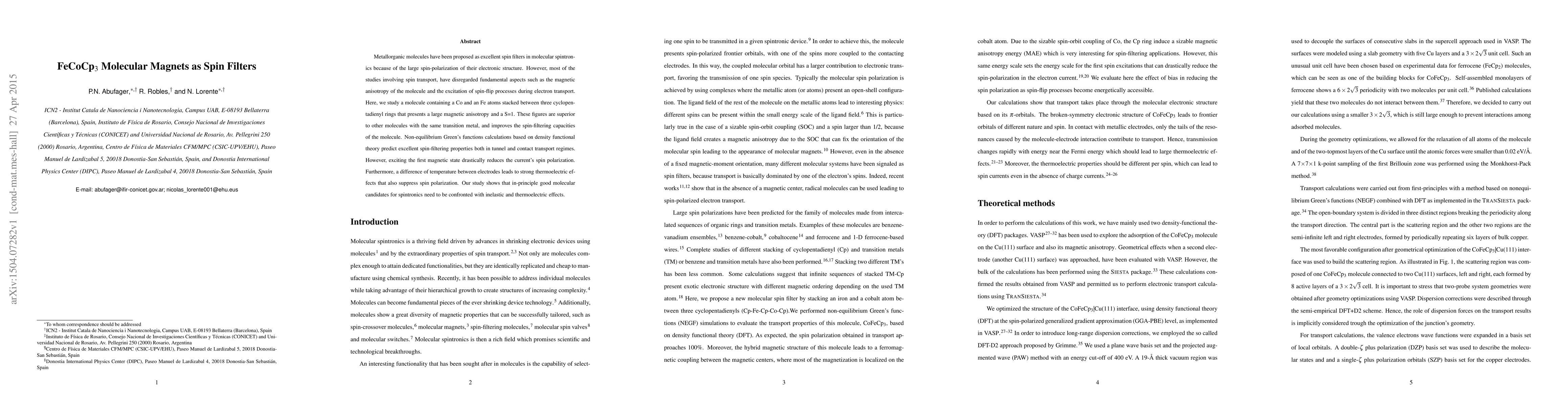 Metallorganic molecules have been proposed as excellent spin filters in molecular spintronics because of the large spin-polarization of their electronic structure. However, most of the studies involving spin transport, have disregarded fundamental aspects such as the magnetic anisotropy of the molecule and the excitation of spin-flip processes during electron transport. Here, we study a molecule containing a Co and an Fe atoms stacked between three cyclopentadienyl rings that presents a large magnetic anisotropy and a S=1. These figures are superior to other molecules with the same transition metal, and improves the spin-filtering capacities of the molecule. Non-equilibrium Green's functions calculations based on density functional theory predict excellent spin-filtering properties both in tunnel and contact transport regimes. However, exciting the first magnetic state drastically reduces the current's spin polarization. Furthermore, a difference of temperature between electrodes leads to strong thermoelectric effects that also suppress spin polarization. Our study shows that in-principle good molecular candidates for spintronics need to be confronted with inelastic and thermoelectric effects.
