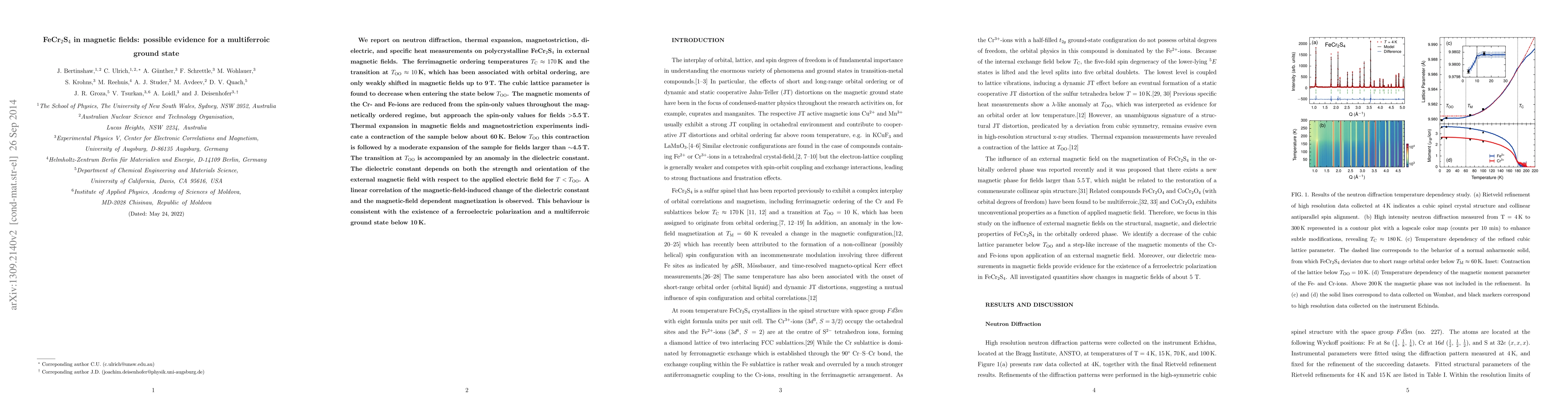 dielectric, and specific heat measurements on polycrystalline FeCr2S4 in