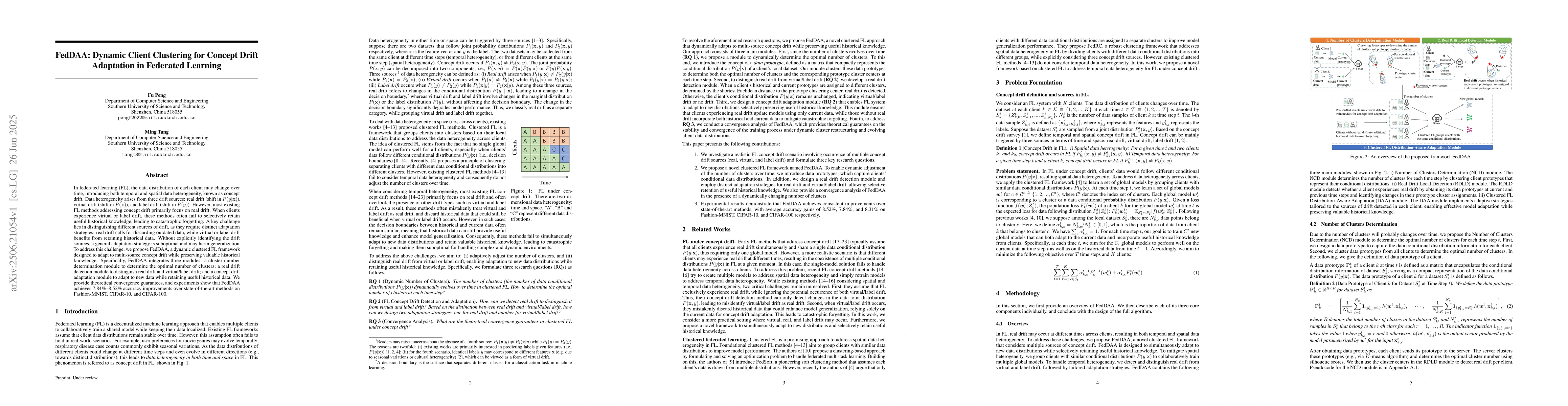 The research introduces FedDAA, a federated learning framework addressing multi-source concept drift by distinguishing real, virtual, and label drift. FedDAA consists of modules for optimal cluster determination, drift source identification, and adaptation to new data while retaining historical knowledge, showing 7.84% to 8.52% accuracy improvements over existing methods on benchmark datasets.