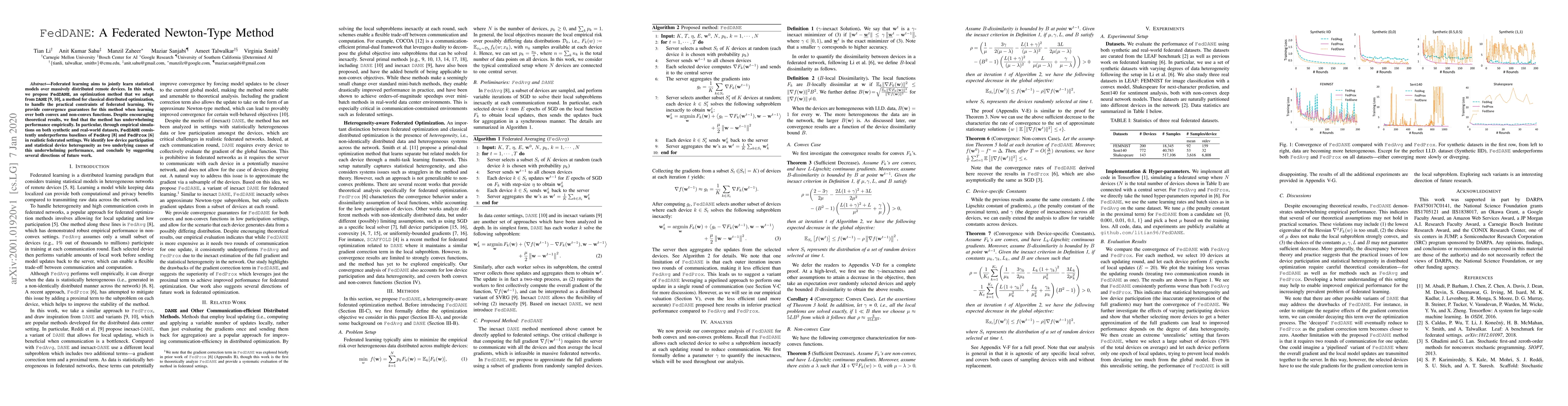 Federated learning aims to jointly learn statistical models over massively distributed remote devices. In this work, we propose FedDANE, an optimization method that we adapt from DANE, a method for classical distributed optimization, to handle the practical constraints of federated learning. We provide convergence guarantees for this method when learning over both convex and non-convex functions. Despite encouraging theoretical results, we find that the method has underwhelming performance empirically. In particular, through empirical simulations on both synthetic and real-world datasets, FedDANE consistently underperforms baselines of FedAvg and FedProx in realistic federated settings. We identify low device participation and statistical device heterogeneity as two underlying causes of this underwhelming performance, and conclude by suggesting several directions of future work.